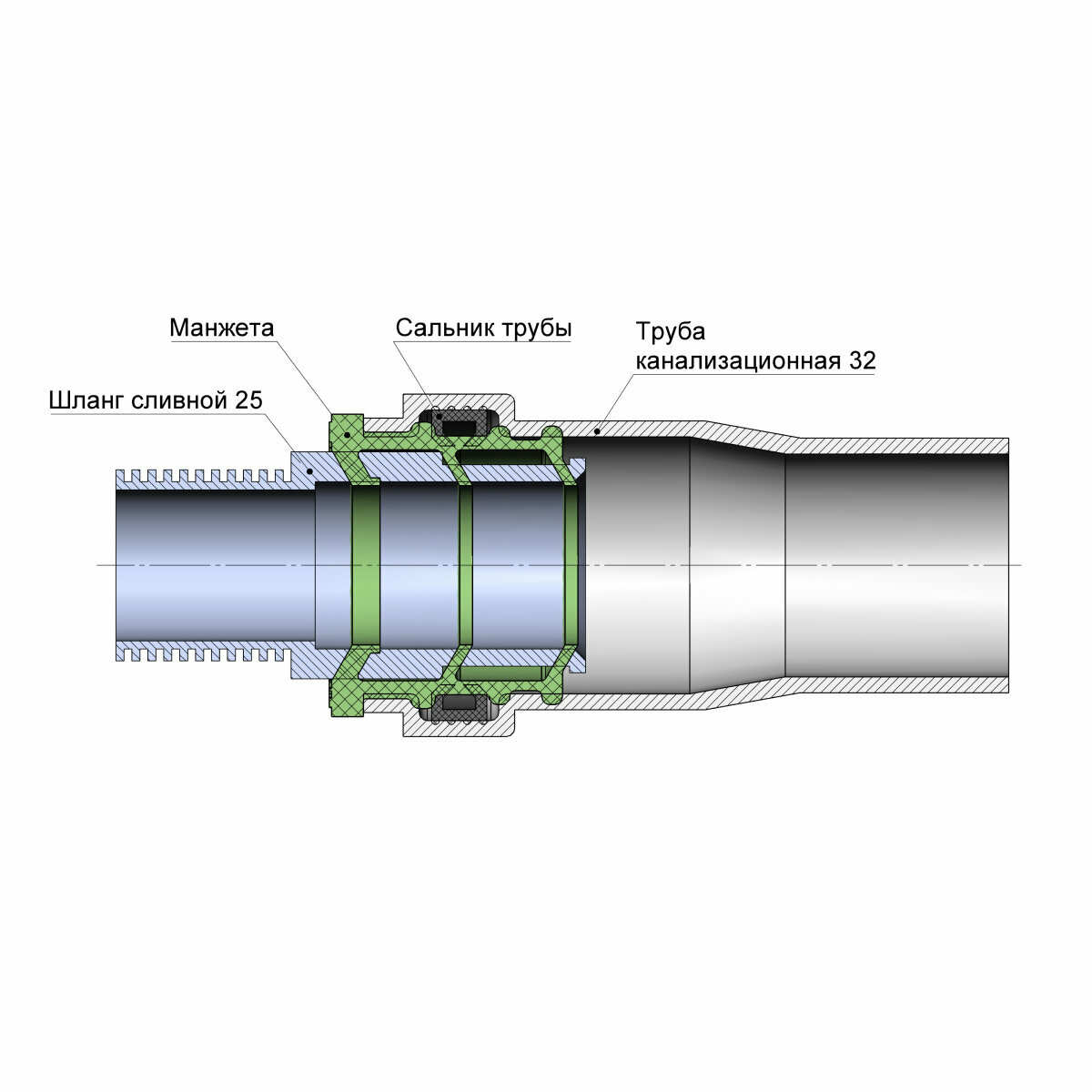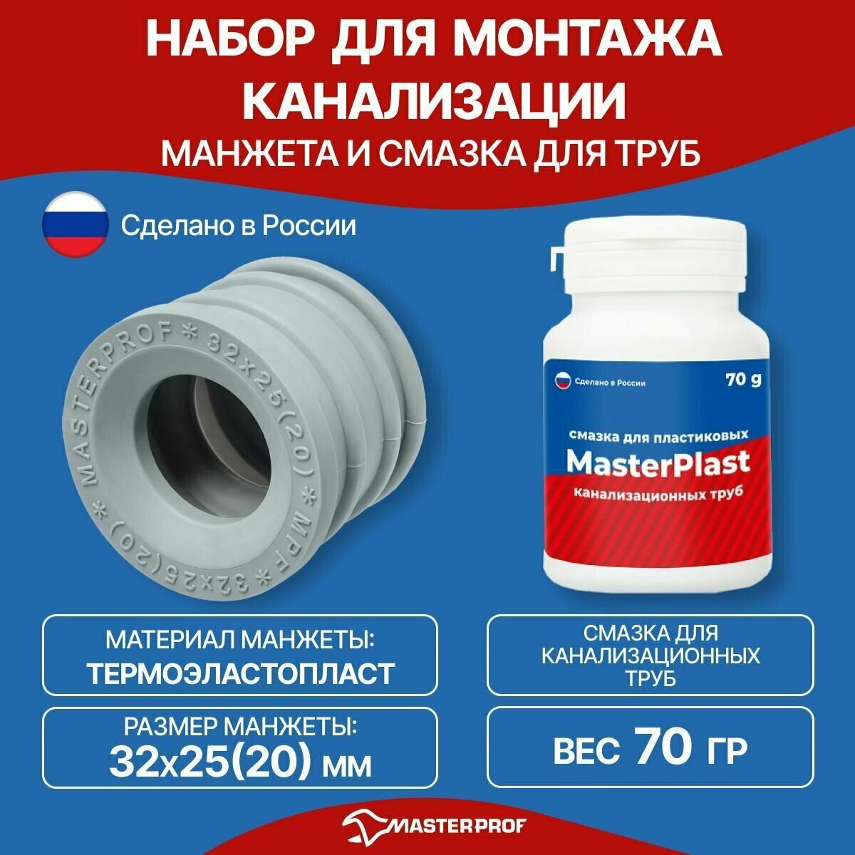 Набор для подключения стиральной машины к канализации, Манжета 32х25(20) мм серая + Смазка сантехническая 70гр., набор для канализации интересное:
