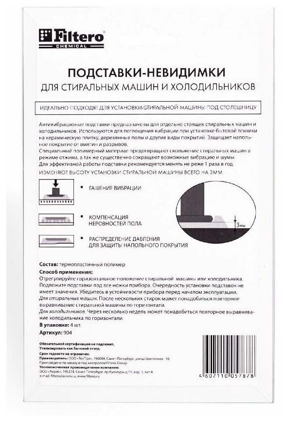 Подставки для стиральных машин Filtero Арт.904 интересное: