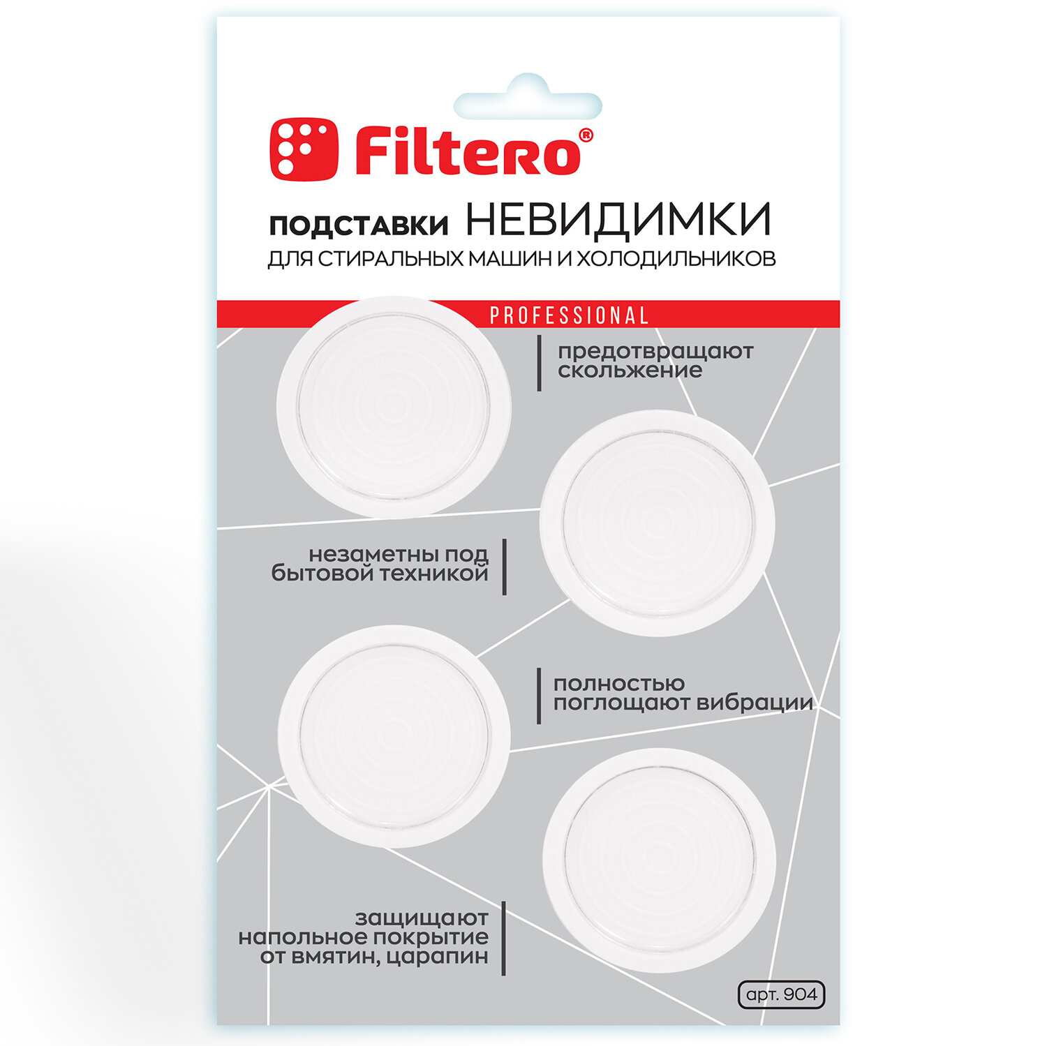 Ультратонкие антивибрационные подставки Filtero для стиральных машин и холодильников, арт.904, круглые