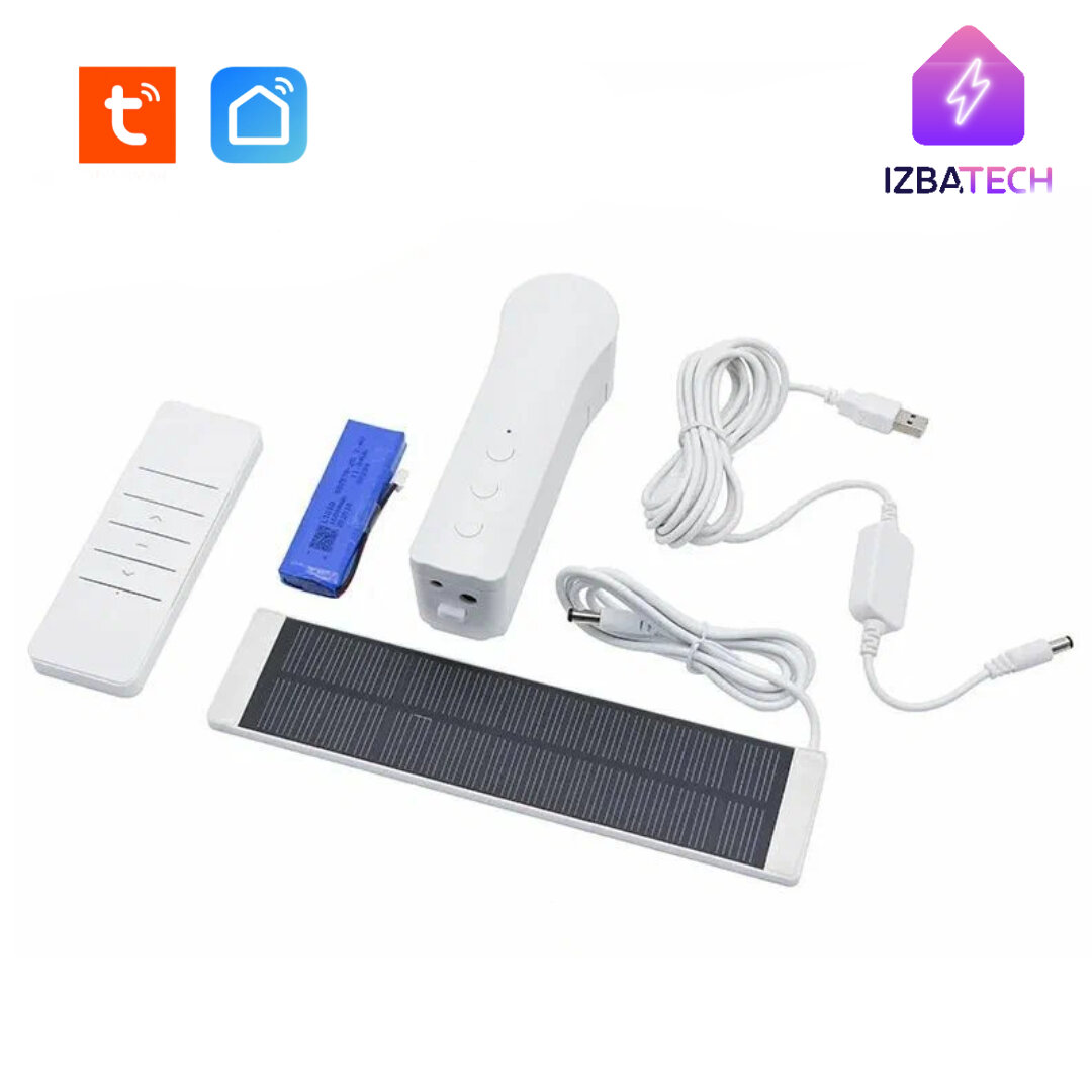 Умный привод для штор, мотор для жалюзи и рулонных штор Zigbee с пультом и солнечной батареей в комплекте