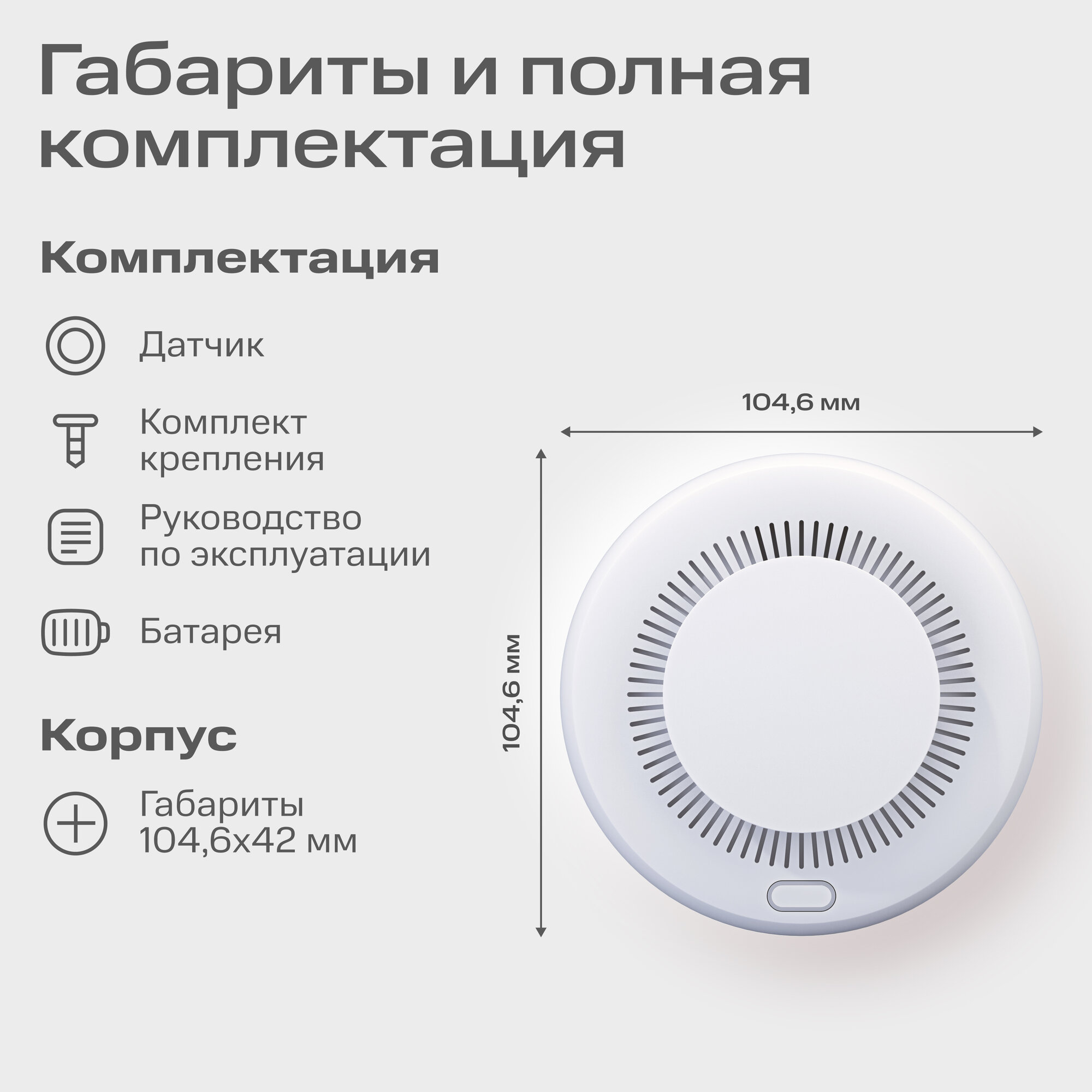 | Подробная комплектация | Умный датчик дыма 1 шт. Умный датчик протечки 1шт. Умный хаб 1 шт. |
