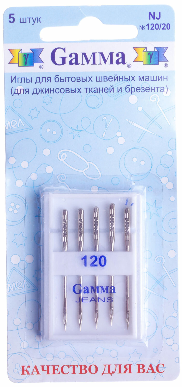 Иглы для быт. шв. машин Gamma NJ №120 для джинсы 5 шт в блистере №120 интересное:
