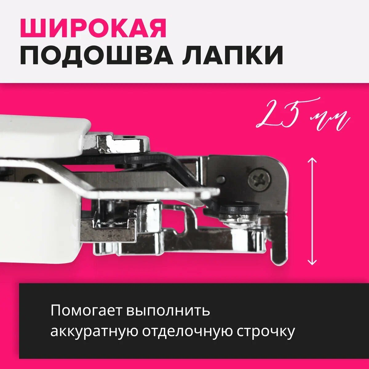 | Назначение лапки | для окантовывания / для потайной молнии / для пэчворка / для трикотажа / универсальная / шагающая |