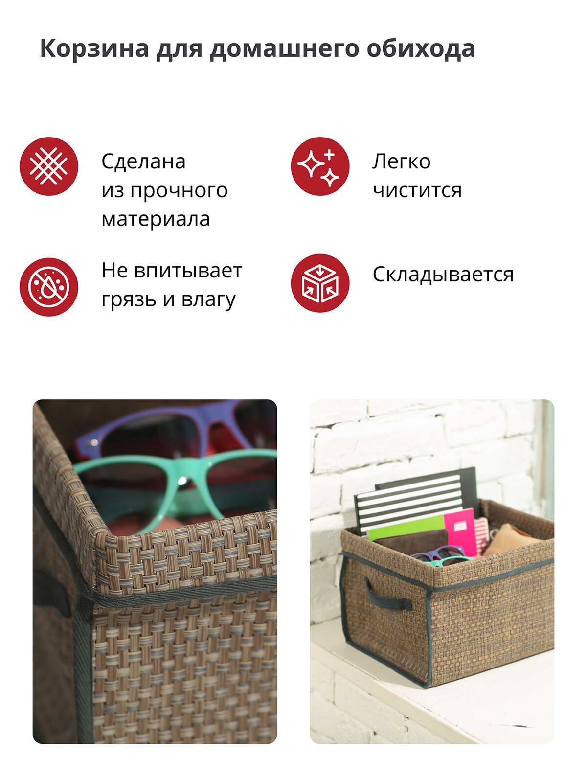 Корзинка для мелочей в прихожую"Casy Home", 26 х 20 х 10, коричневая, складная, водоотталкивающая