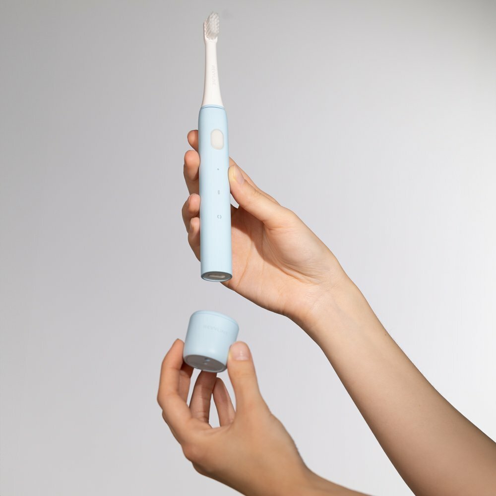 Сменные насадки для электрической звуковой зубной щетки Revyline RL 050, белые / голубые 2 шт.