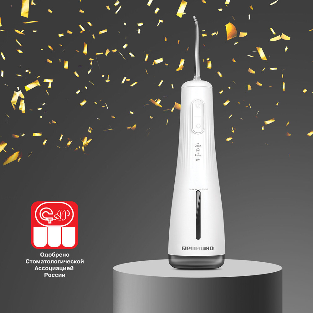 Ирригатор для зубов REDMOND YR4501 (белый), портативный, 4 режима отчистки
