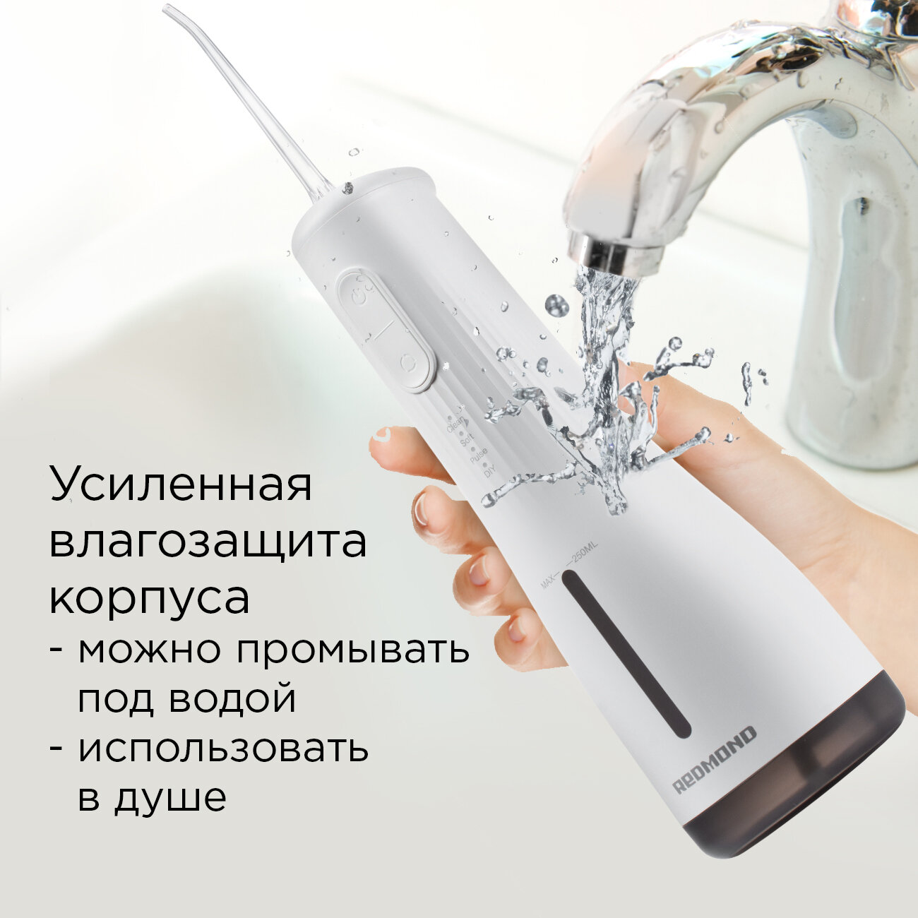 Ирригатор РЕДМОНД YR4501, 4 режима чистки, регулировка силы напора