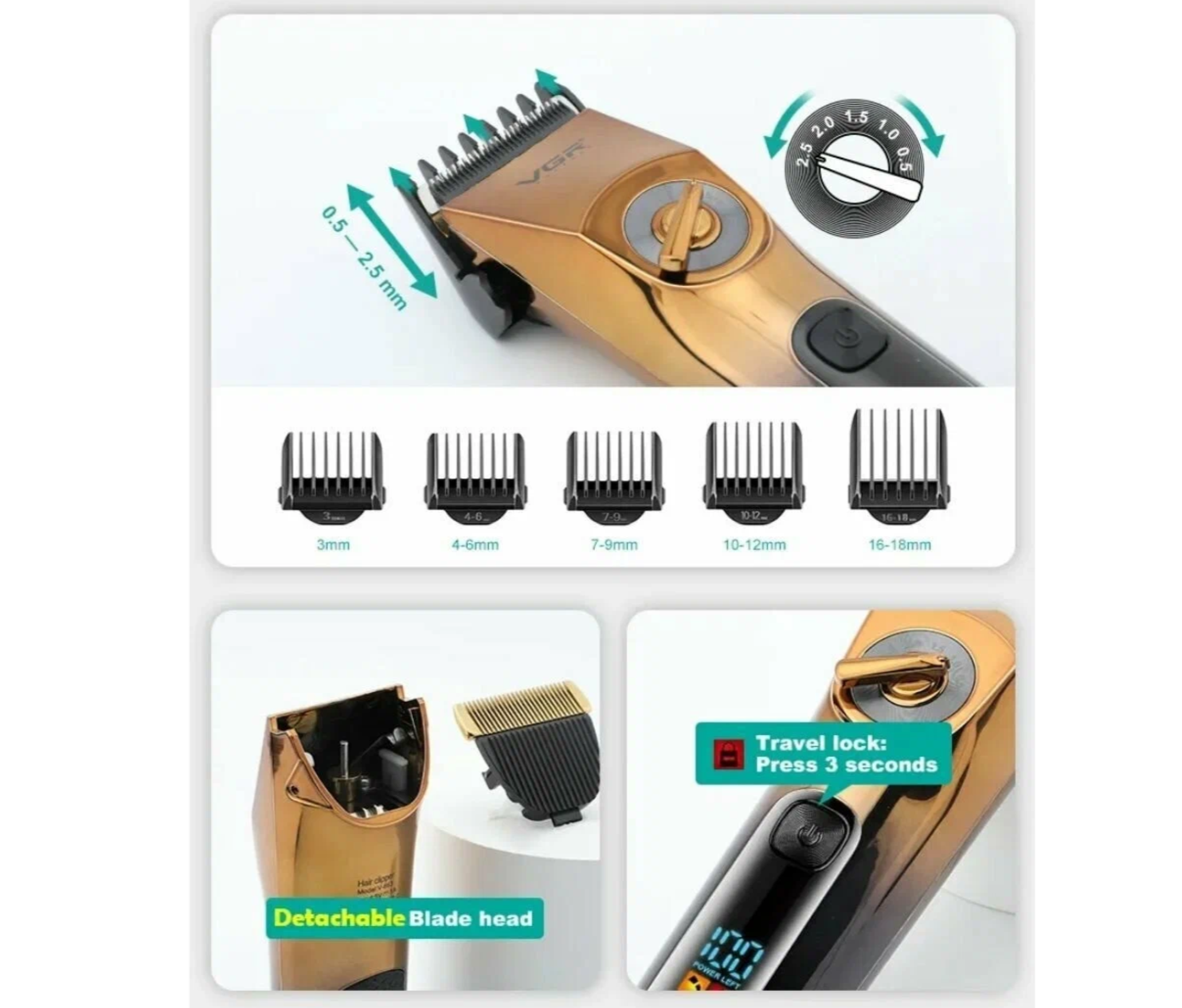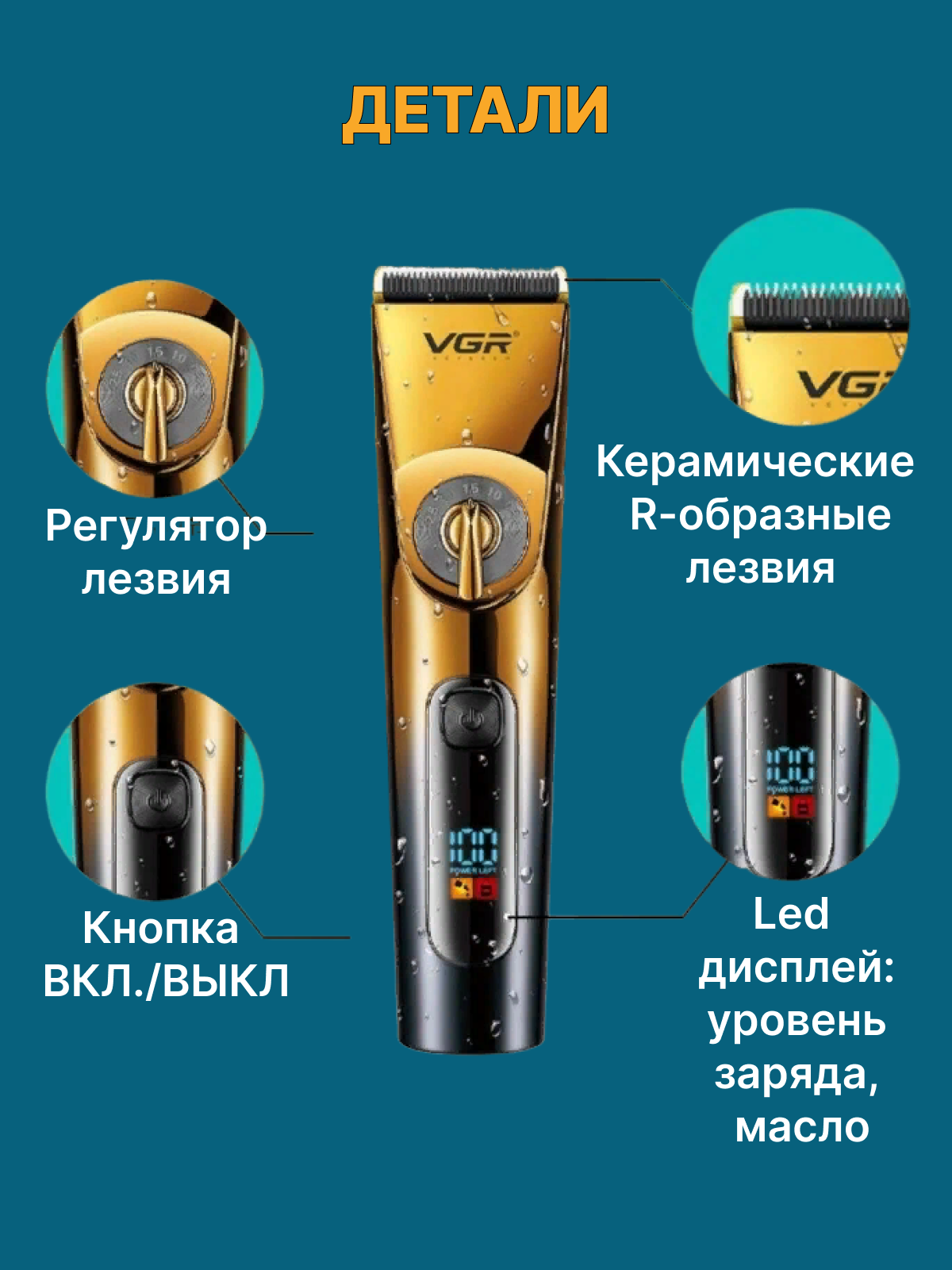 Купить Профессиональная машинка для стрижки волос VGR V-663, Профессиональная машинка с насадками/Аккумуляторная/Окантовочная