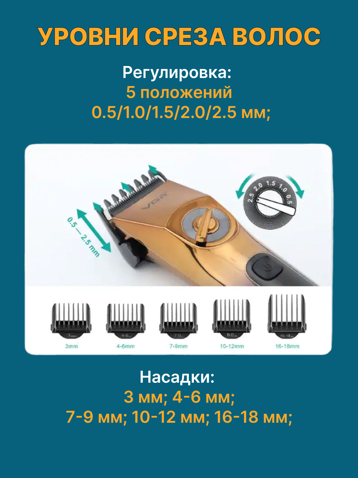 | Шаг изменения длины стрижки | 2 мм |