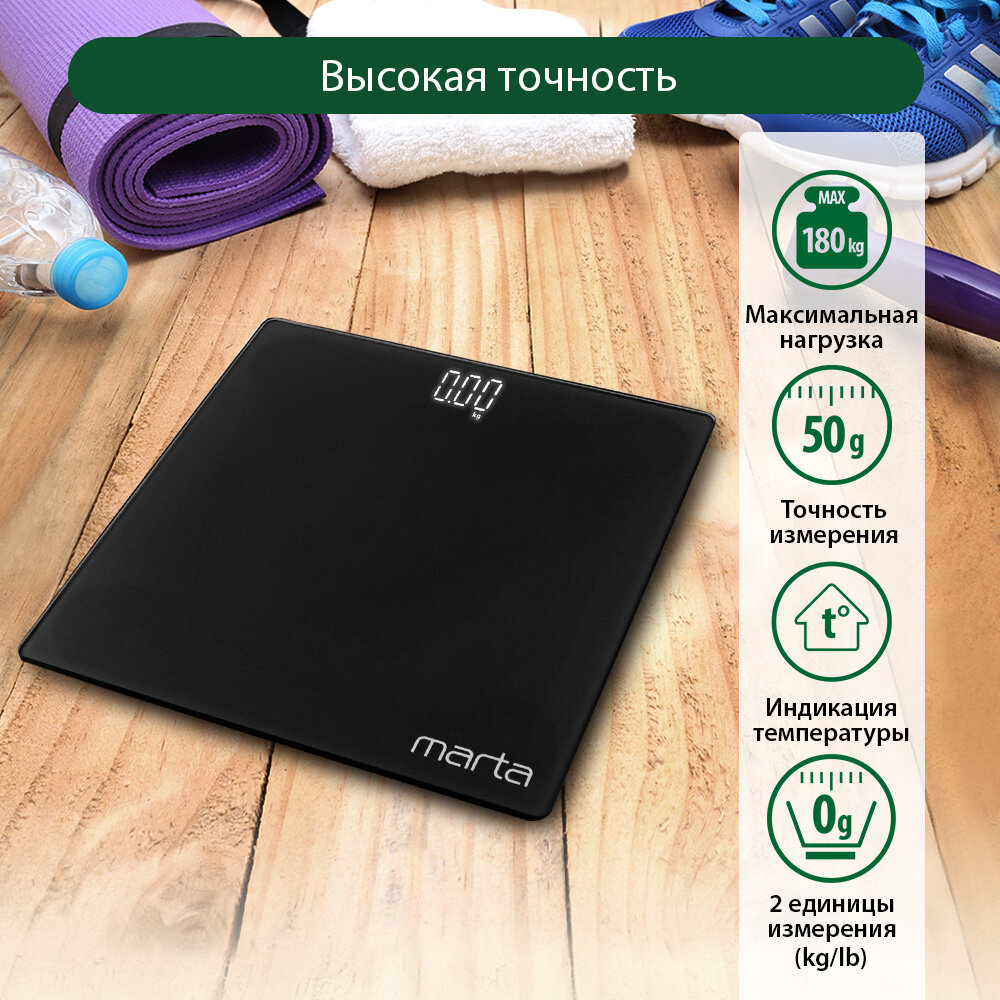 Весы напольные электронные со встроенным термометром MARTA MT-SC3600 черный жемчуг интересное: