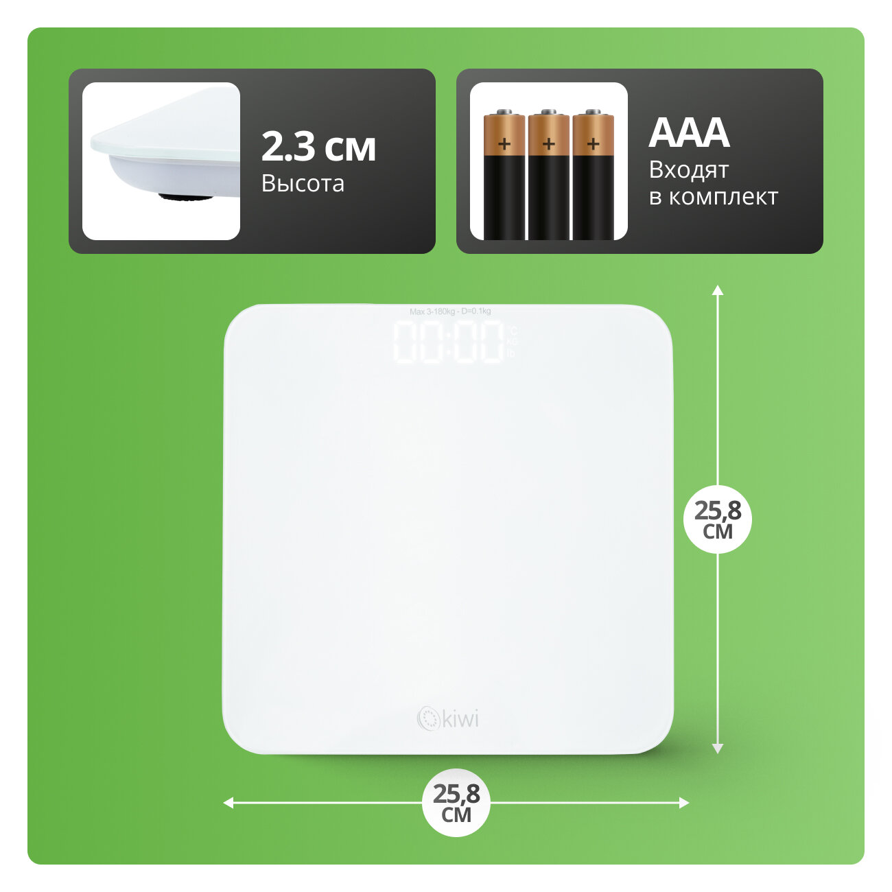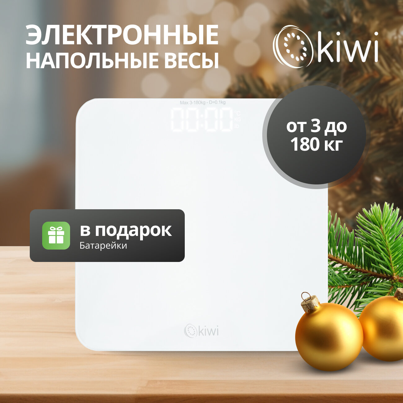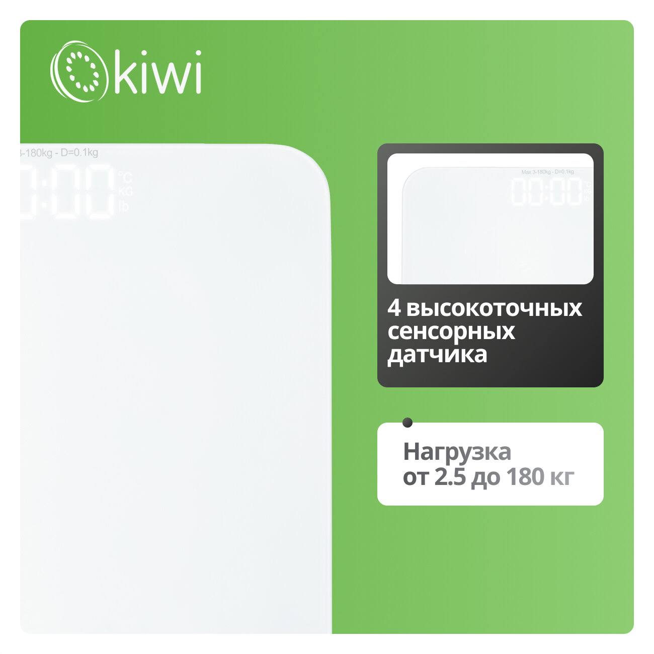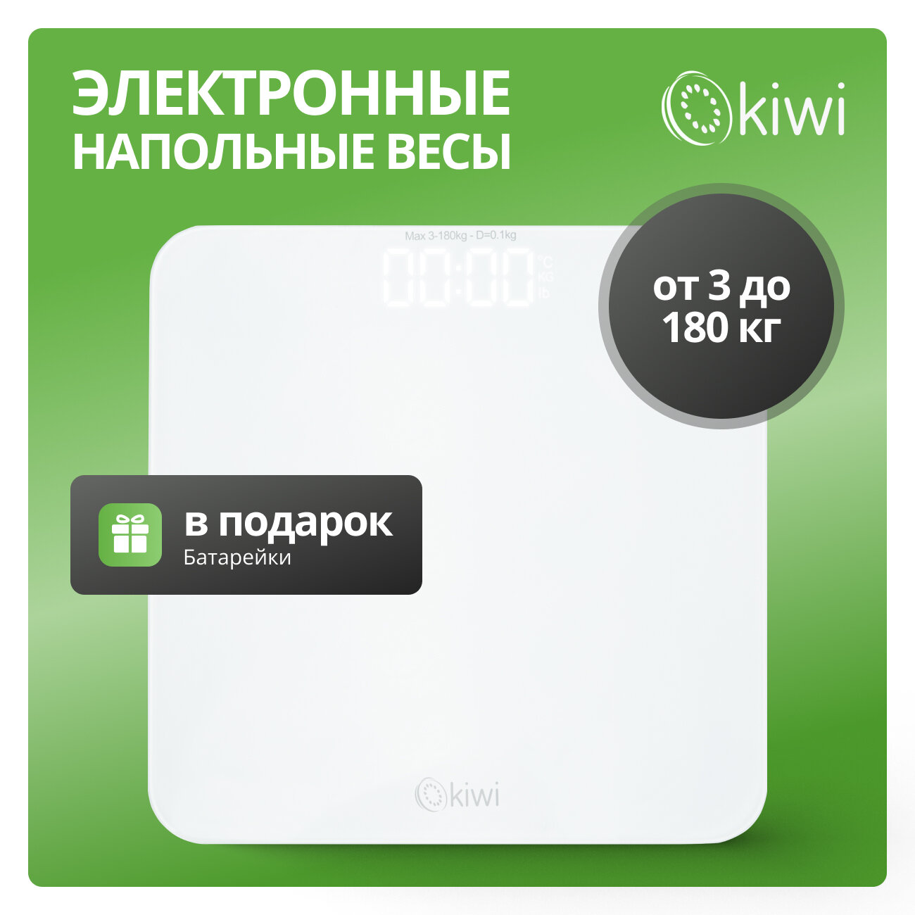 Электронные напольные весы KIWI KBS-1035 от 3 до 180 кг, закаленное стекло, 4 высокоточных сенсорных датчика, индикатор перегрузки от 3 до 180 кг интересное: