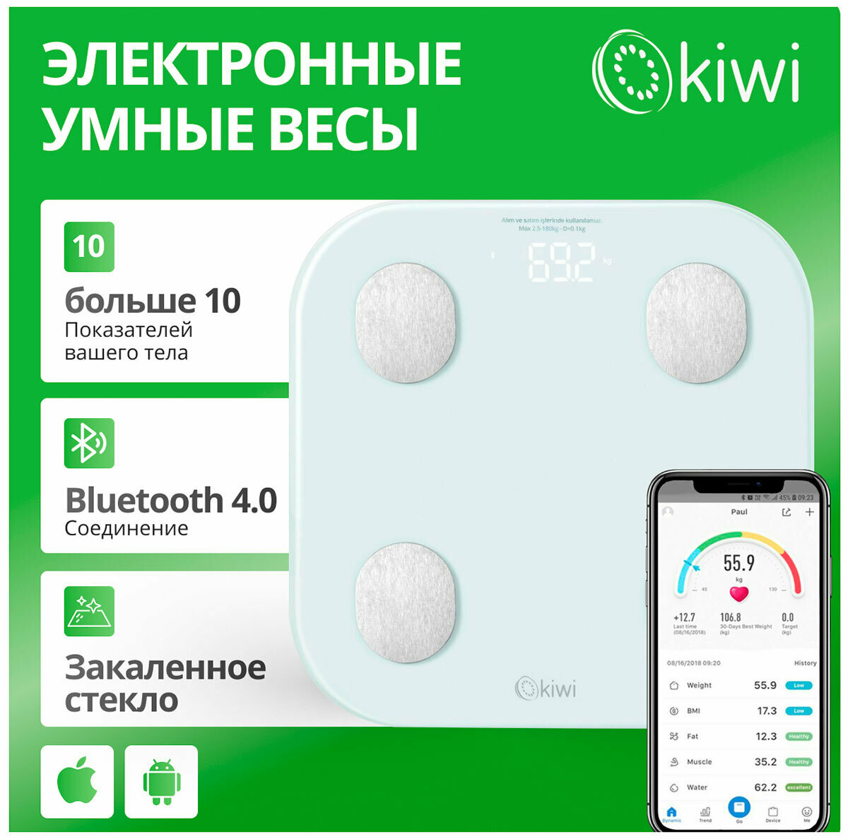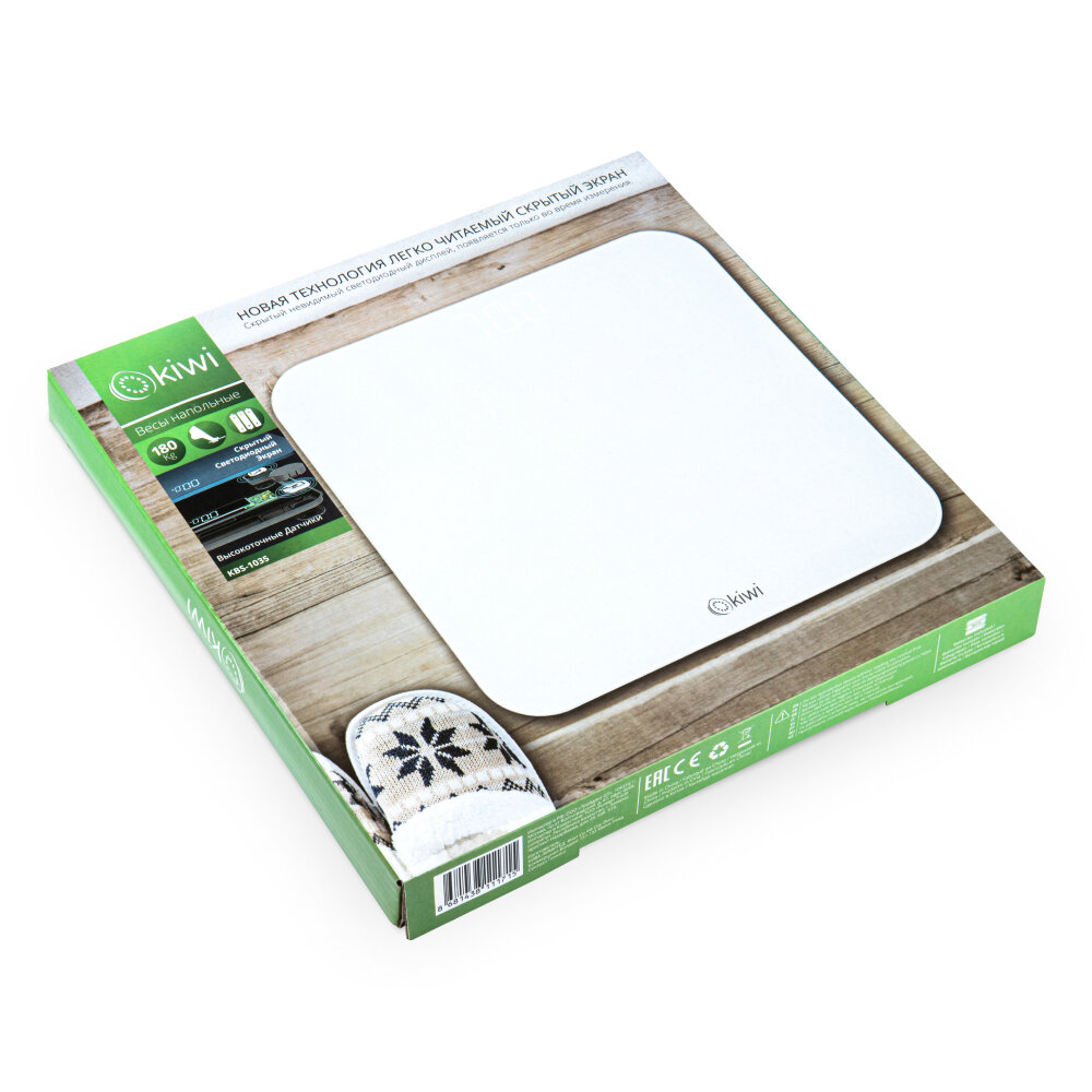 Купить Электронные напольные весы KIWI KBS-1035 от 3 до 180 кг, закаленное стекло, 4 высокоточных сенсорных датчика, индикатор перегрузки от 3 до 180 кг