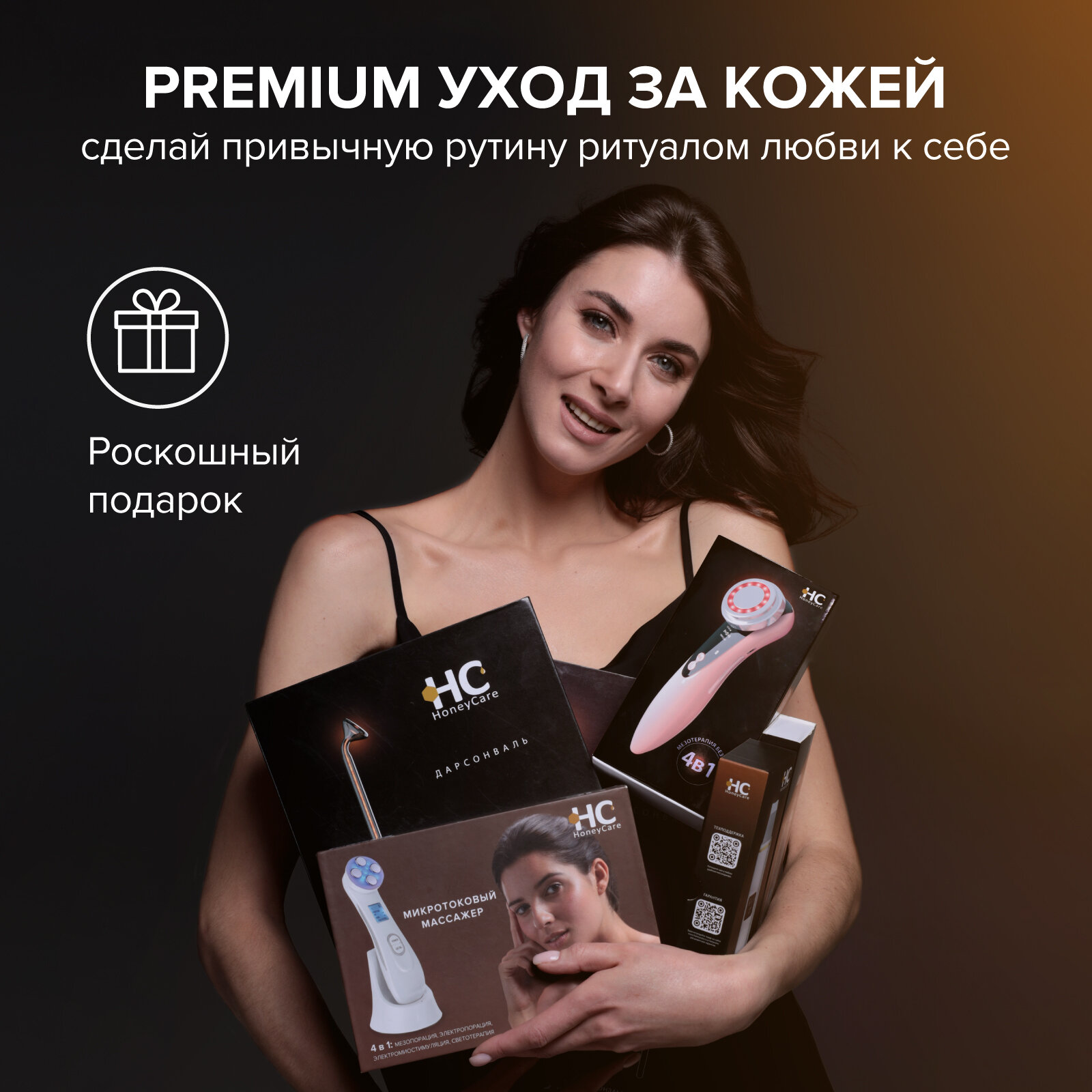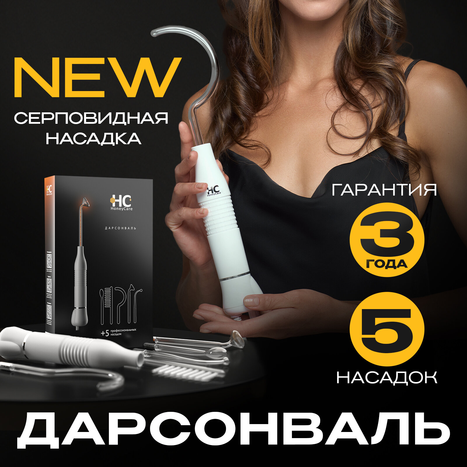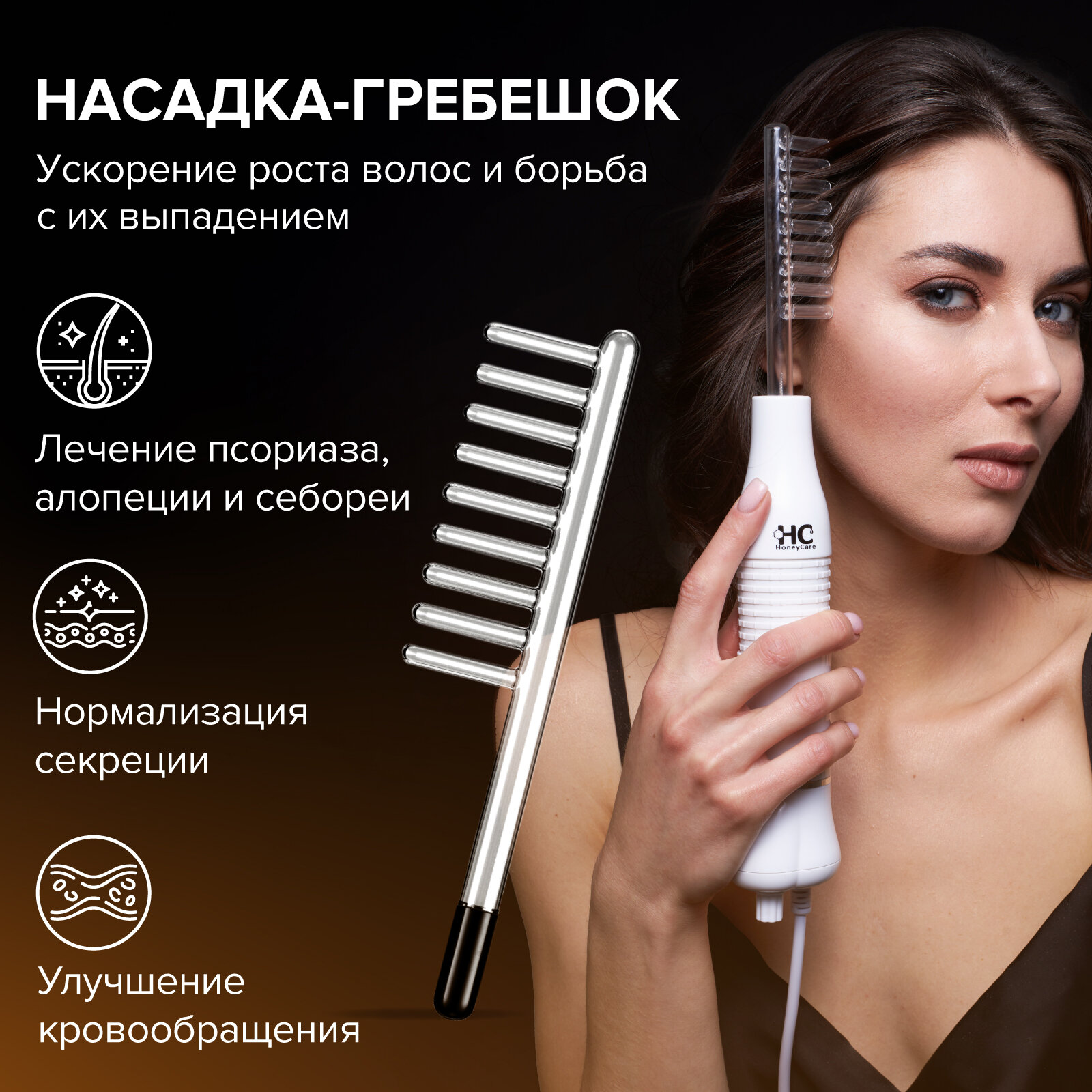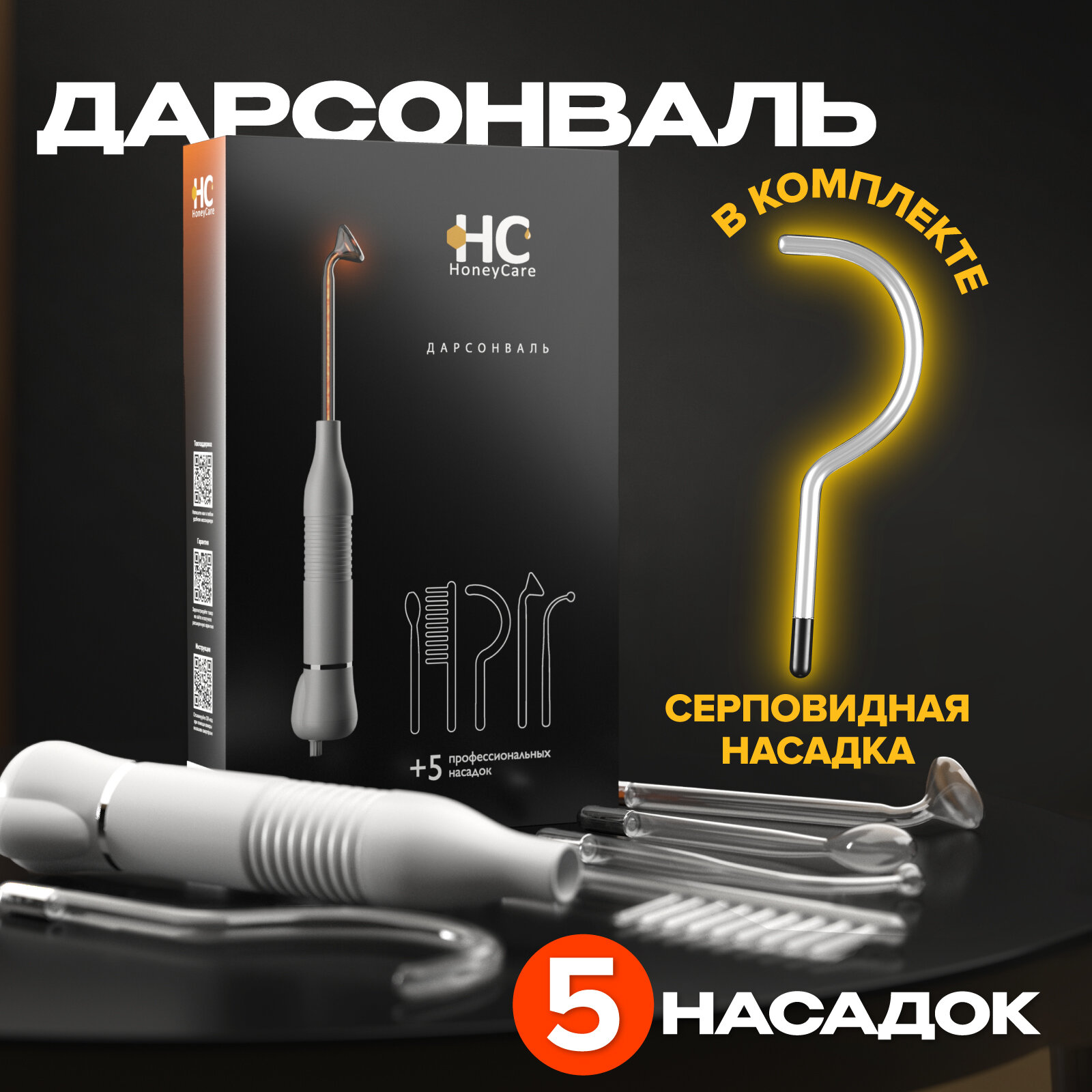 Аппарат дарсонваль HoneyCare для волос, для лица и тела с 5 насадками, подарочная упаковка интересное:
