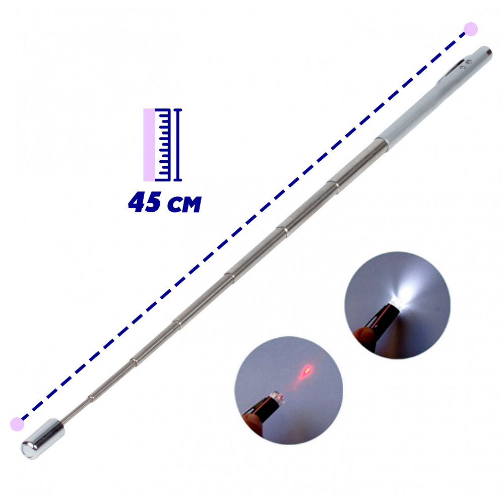 Ручка "Вся-Чина", 5 в 1: ручка-указка, фонарик, магнит, лазерная указка, серебристый