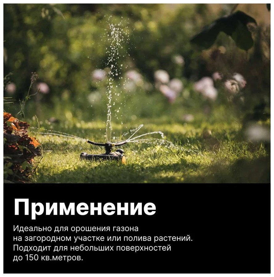 Дождеватель для полива круговой, 28 м2: предназначен для автоматического орошения; в процессе работы вода проходит через специальные сопла