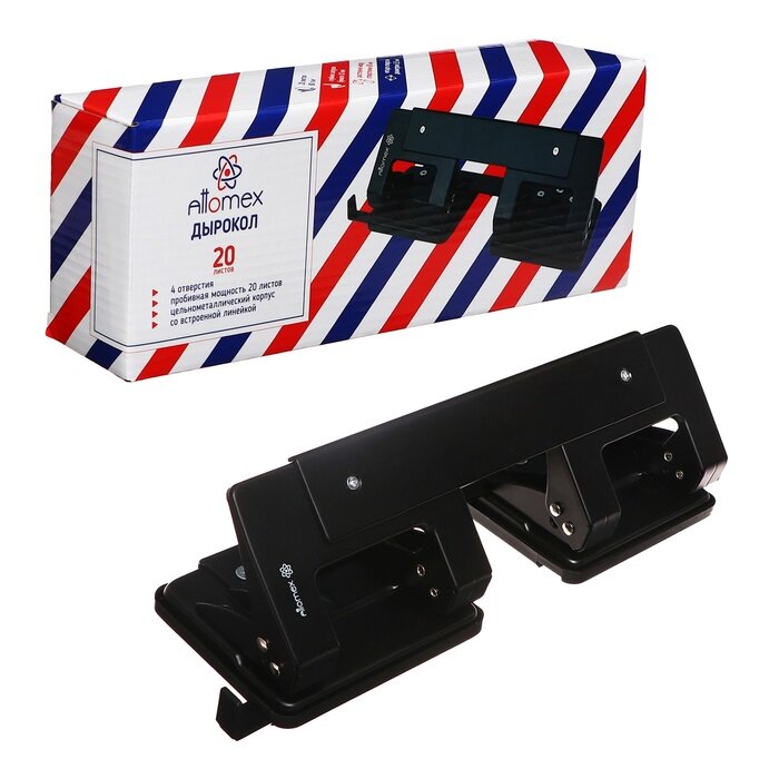 Дырокол металлический 20 листов, Attomex, форматная линейка, чёрный интересное: