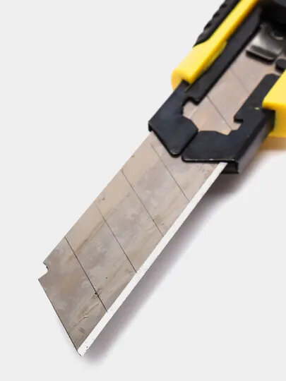 | Дополнительная информация | Острые лезвия шириной 18 мм из высокопрочной стали в надежном пластиковом корпусе со специальной защелкой. Защелка позволяет фиксировать лезвие в нужном положение и регулировать длину ножа. Если лезвие затупилось, достаточно выдвинуть часть, пришедшую в негодность, и обломать ее по наклонной черте, нанесенной на поверхности ножа. Имеется отверстие для подвеса. |