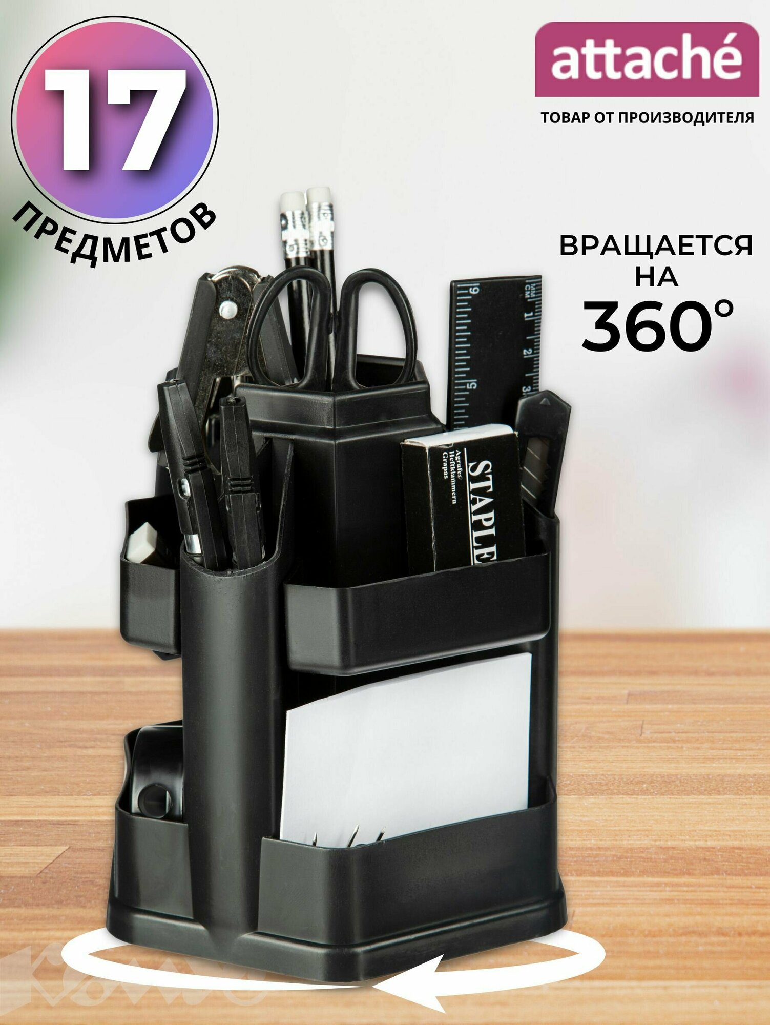 Органайзер для канцелярии настольный Attache, вращающийся, с наполнением 17 предметов