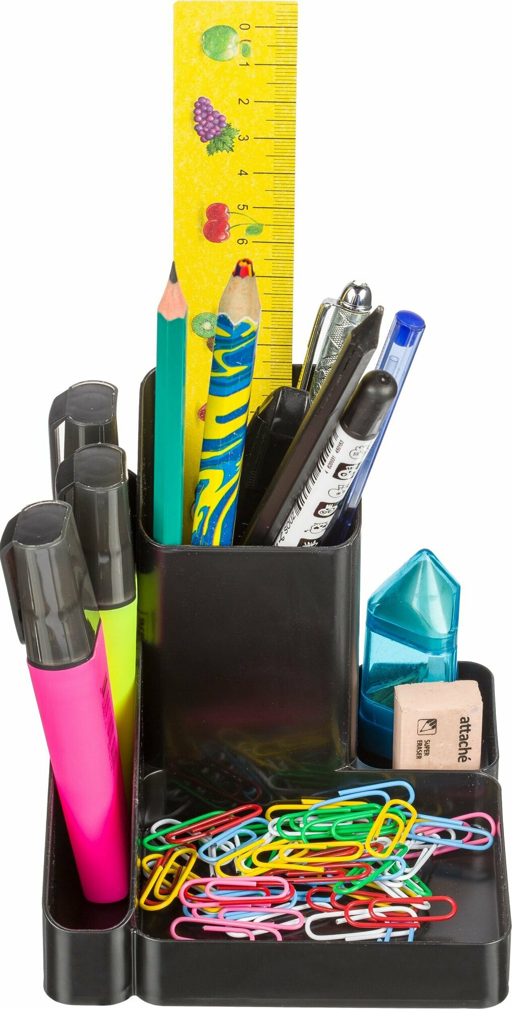 Подставка-органайзер для канцелярских принадлежностей Attache Имидж 4 отделения черная 11.1x11.5x12.2 см, 913419