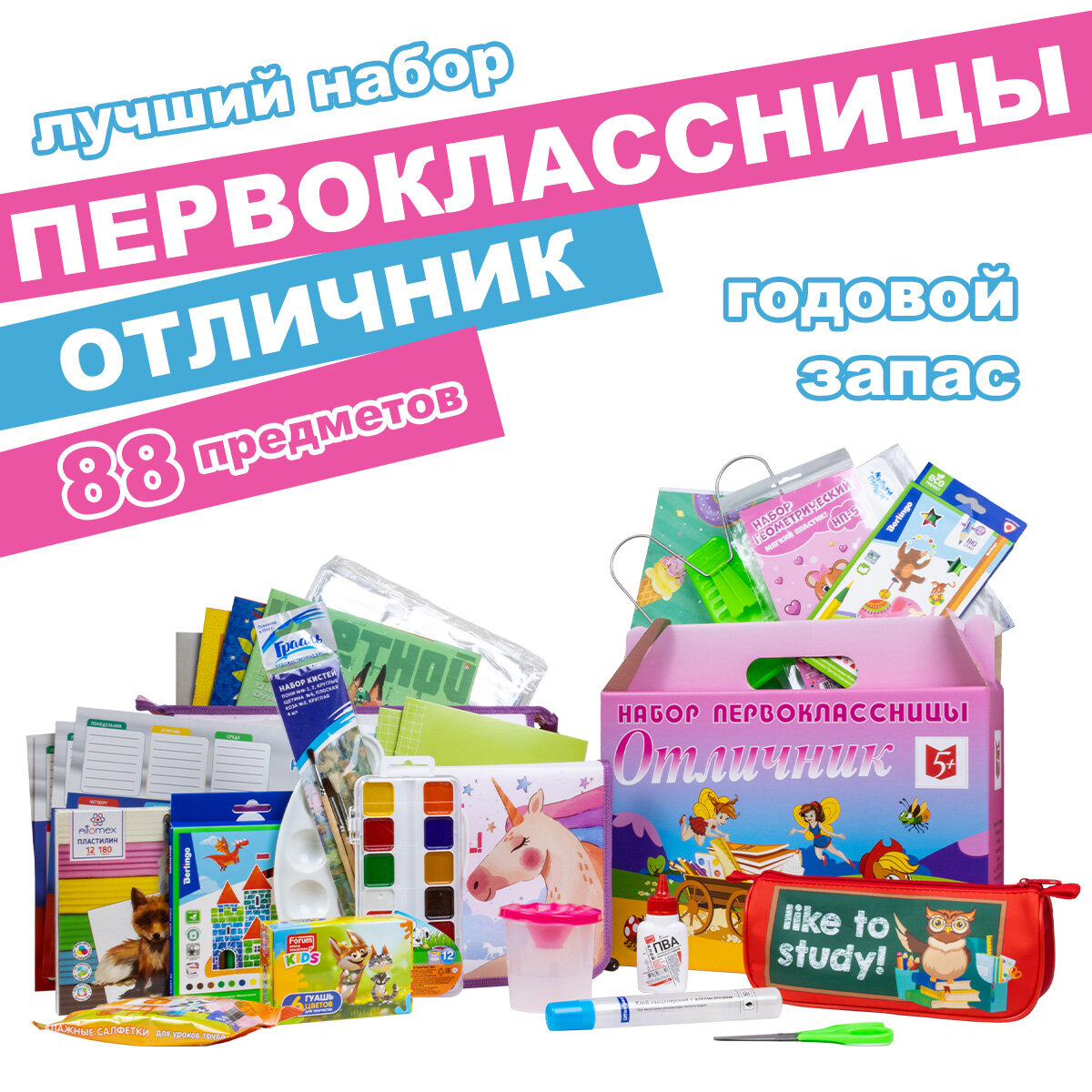 Купить Набор первоклассника "Отличник - лучший" 88 предметов, девочке