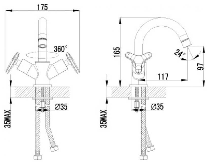 Смеситель для раковины Lemark Spirit хром двухвентильный с поворотным изливом (LM1907C)