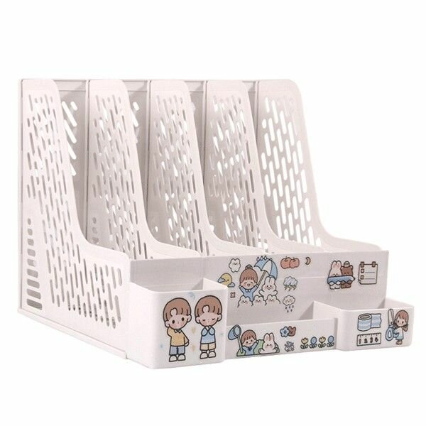 Подставка-органайзер + лоток вертикальный deVENTE Universal 4 секции 3 отделения, сборный зеленый со стикерами kawaii