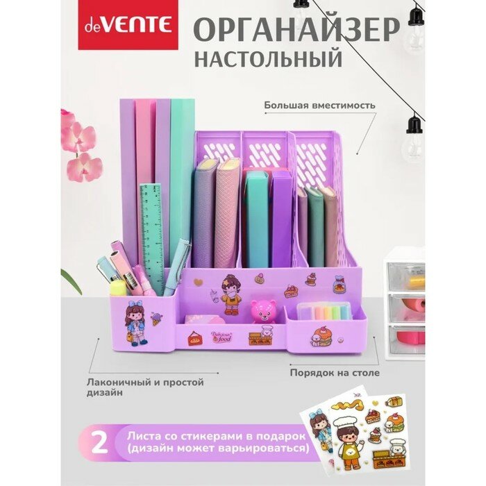Бюро-органайзер deVENTE "Universal", настольный, многофункциональный, пластик, фиолетовый, 32,5х30,4х26,3 см