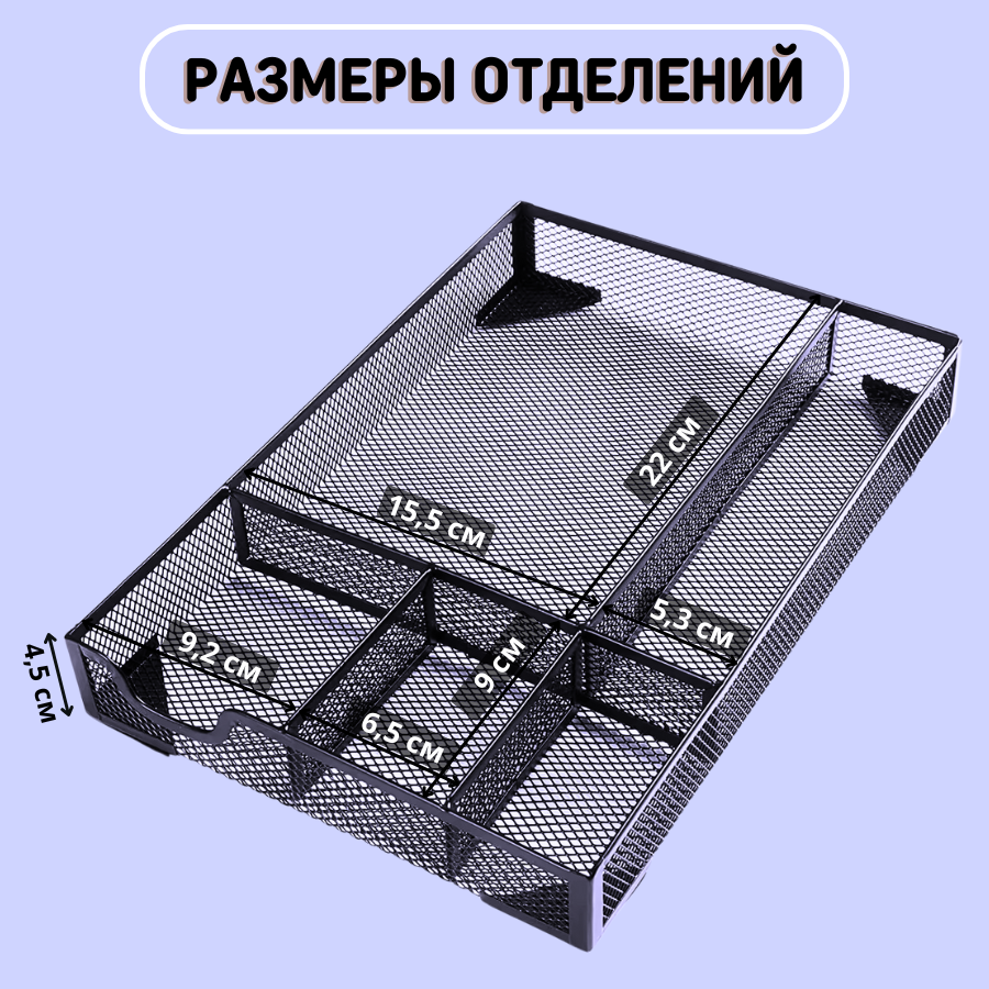 Органайзер металлический черный, набор 6 в 1 (6 секций)