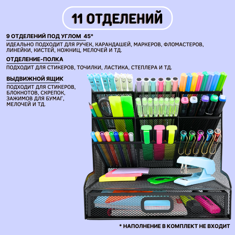 Органайзер подставка для канцелярии, ручек и карандашей настольный, черный