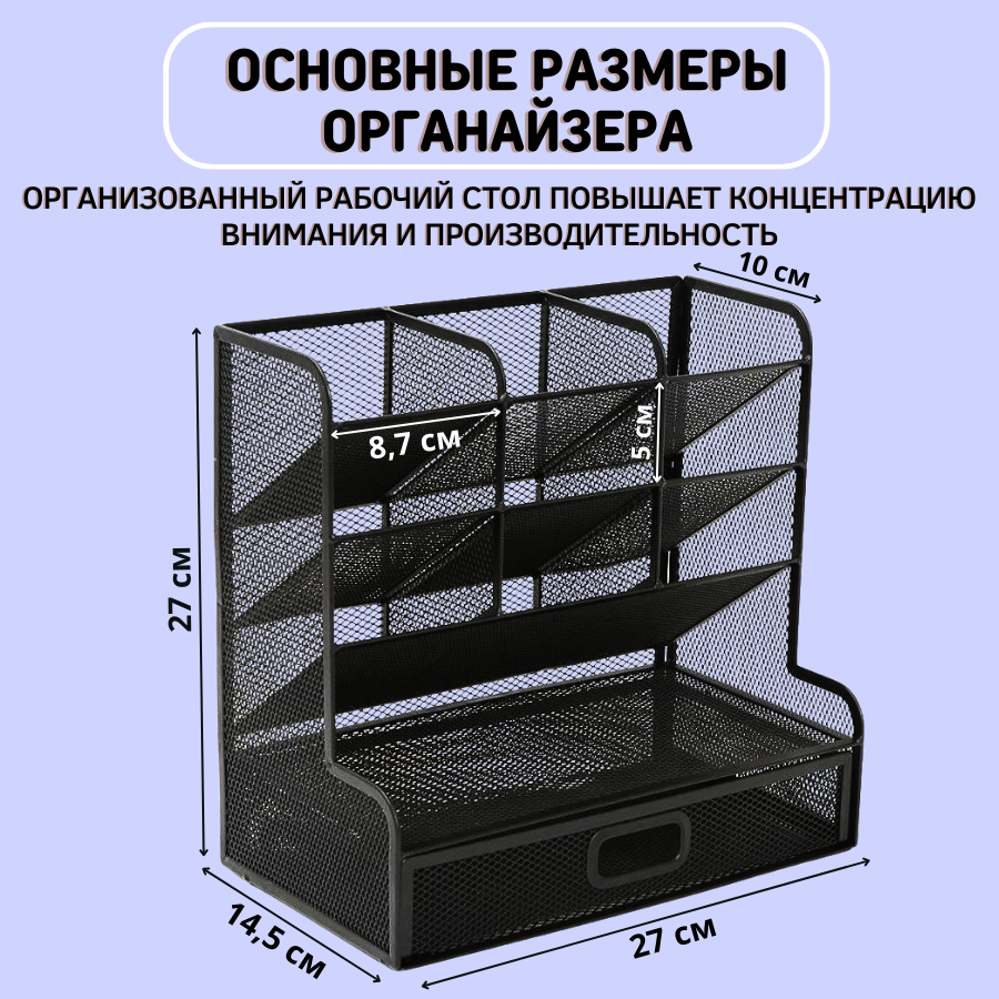Органайзер подставка для канцелярии металлический настольный