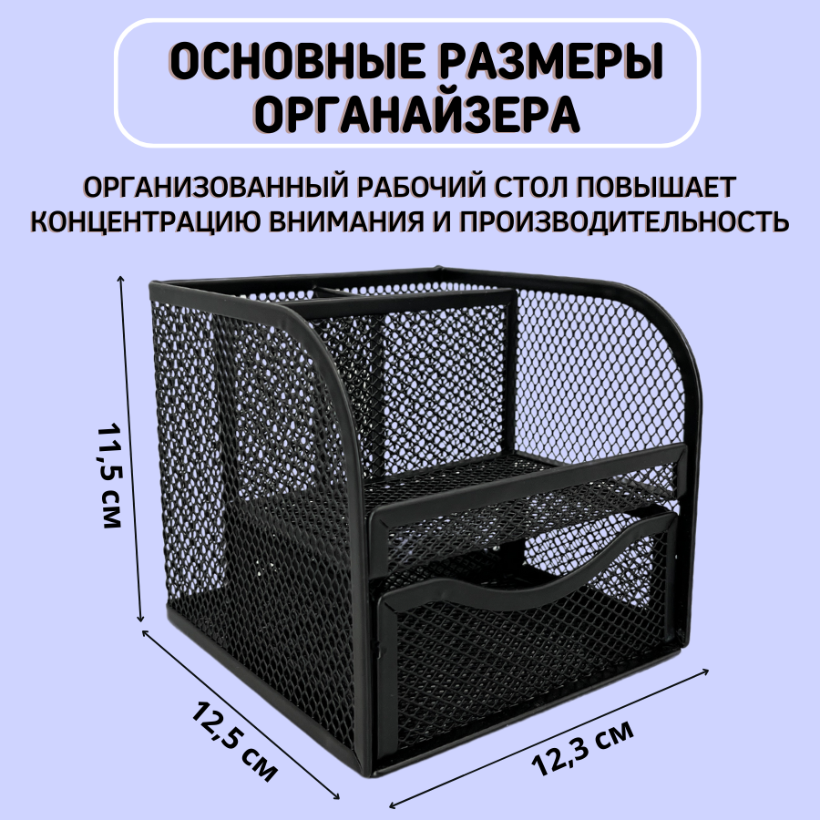 Органайзер подставка для канцелярии металлический настольный карандашница