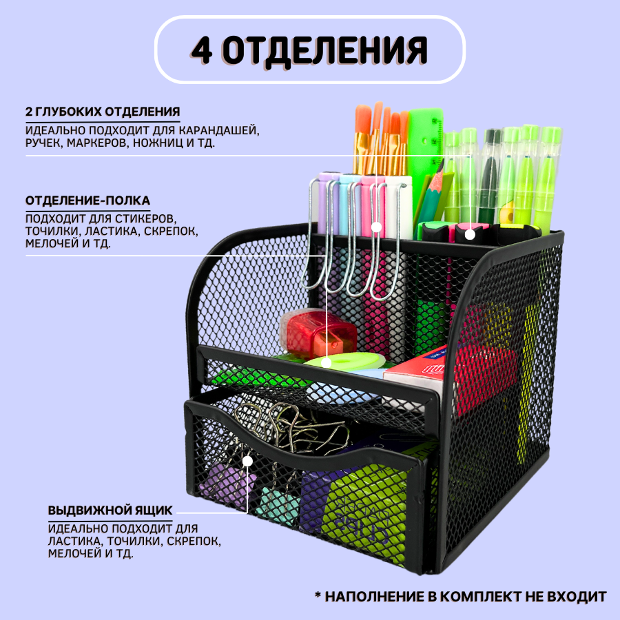 Органайзер подставка для канцелярии, ручек и карандашей настольный, черный