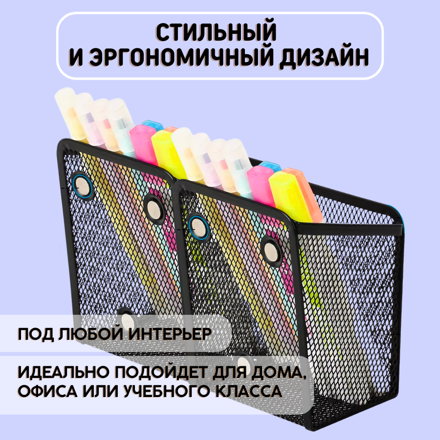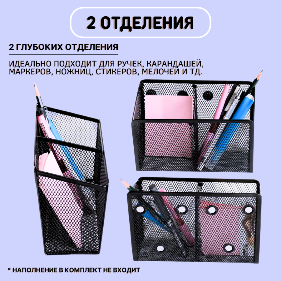 Купить Металлическая подставка органайзер стакан CANBI для канцелярии, карандашница на магнитах 2 отделения