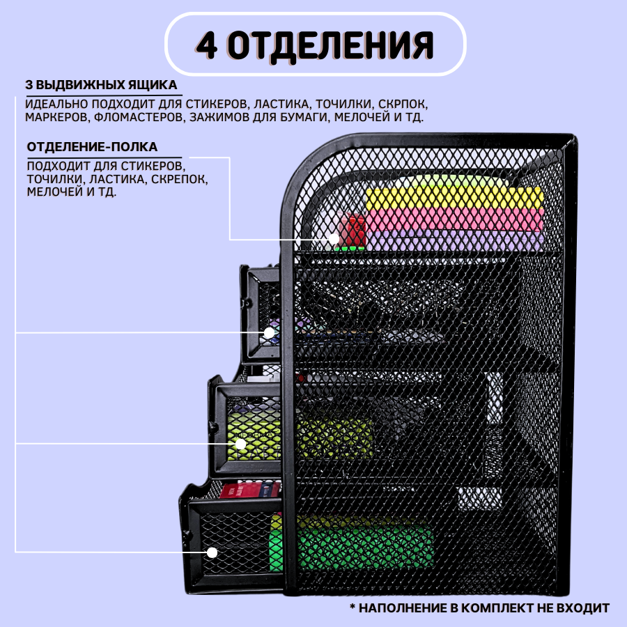 Органайзер подставка для канцелярии и бумаг настольный 4 отделения