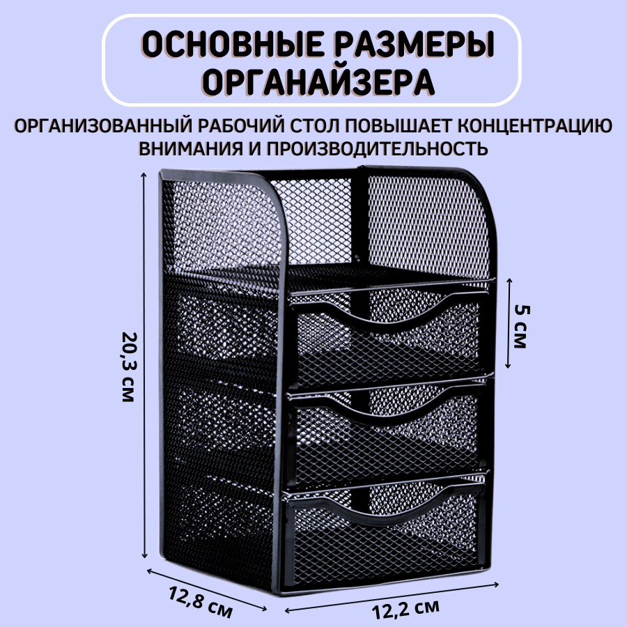 Органайзер подставка для канцелярии металлический настольный карандашница