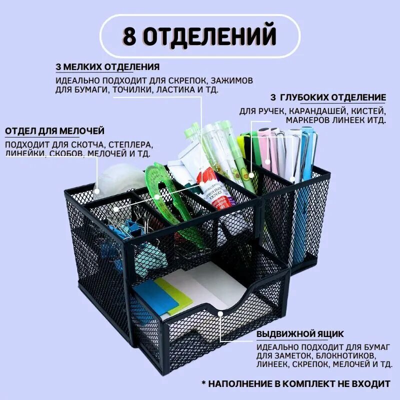 Органайзер подставка для канцелярии металлический настольный