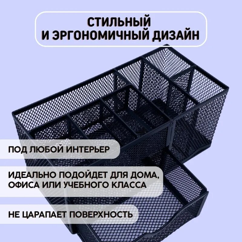 Органайзер подставка для канцелярии, ручек и карандашей настольный, черный