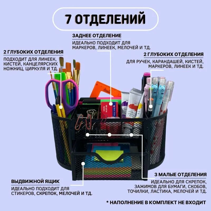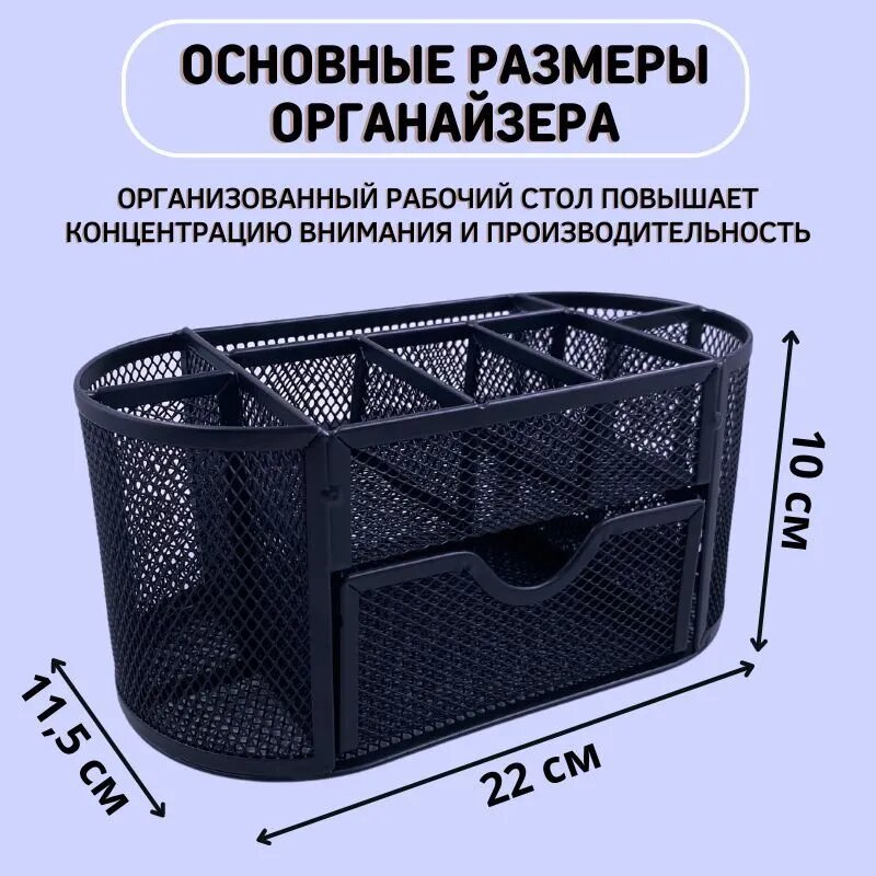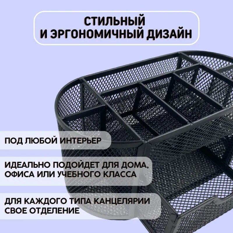 Органайзер подставка для канцелярии, ручек и карандашей настольный, черный