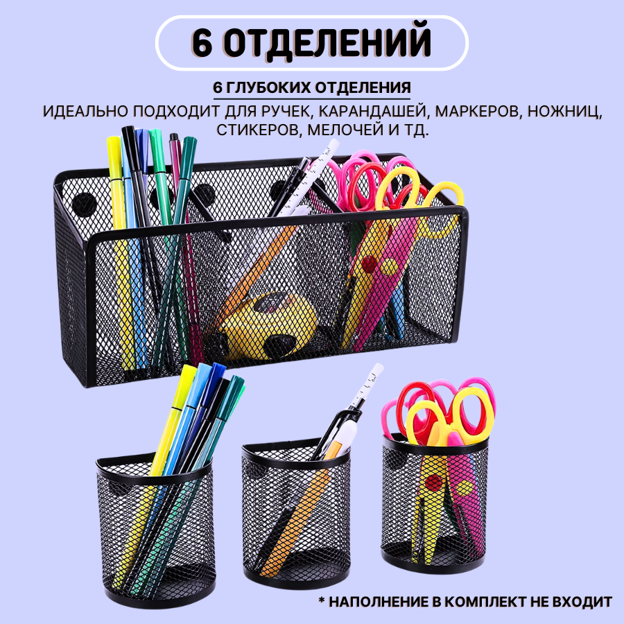 Купить Металлическая подставка органайзер стакан CANBI для канцелярии, карандашница на магнитах 6 отделений