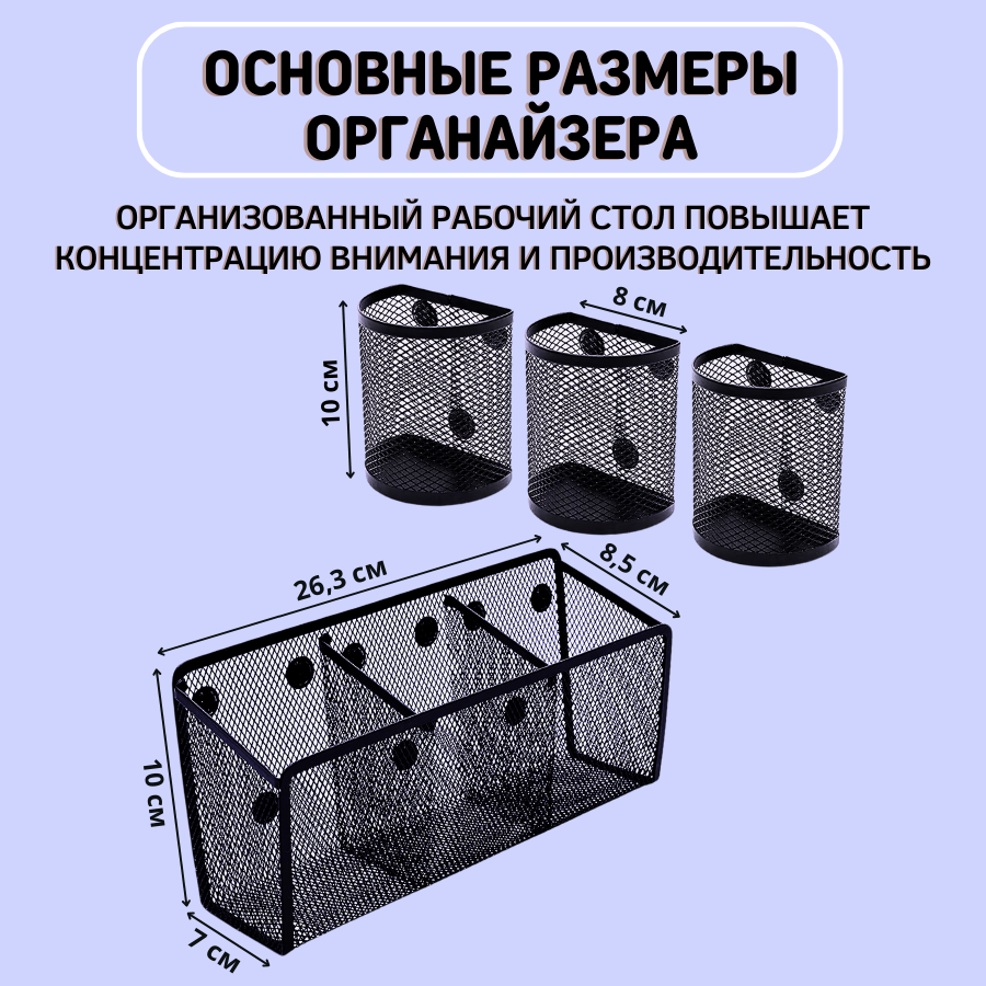 Металлическая подставка органайзер стакан CANBI для канцелярии, карандашница на магнитах 3 отделения