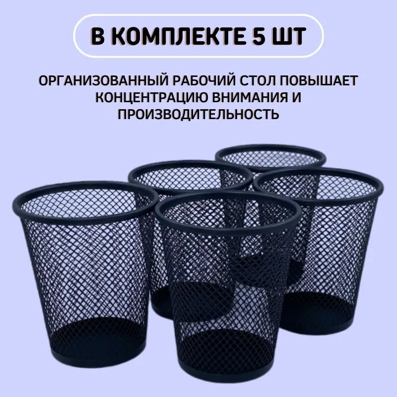Металлическая подставка органайзер CANBI для канцелярии, черная 5 шт