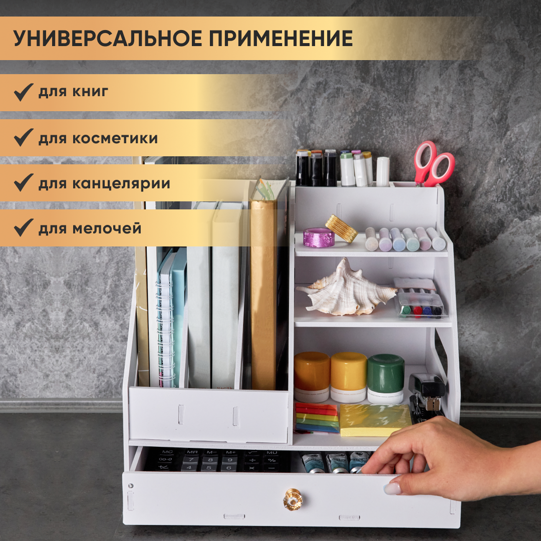 Купить Органайзер для канцелярии настольный OQQI, с ящиком, подставка для книг и тетрадей