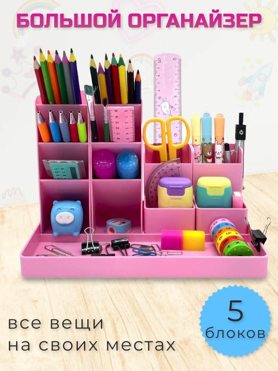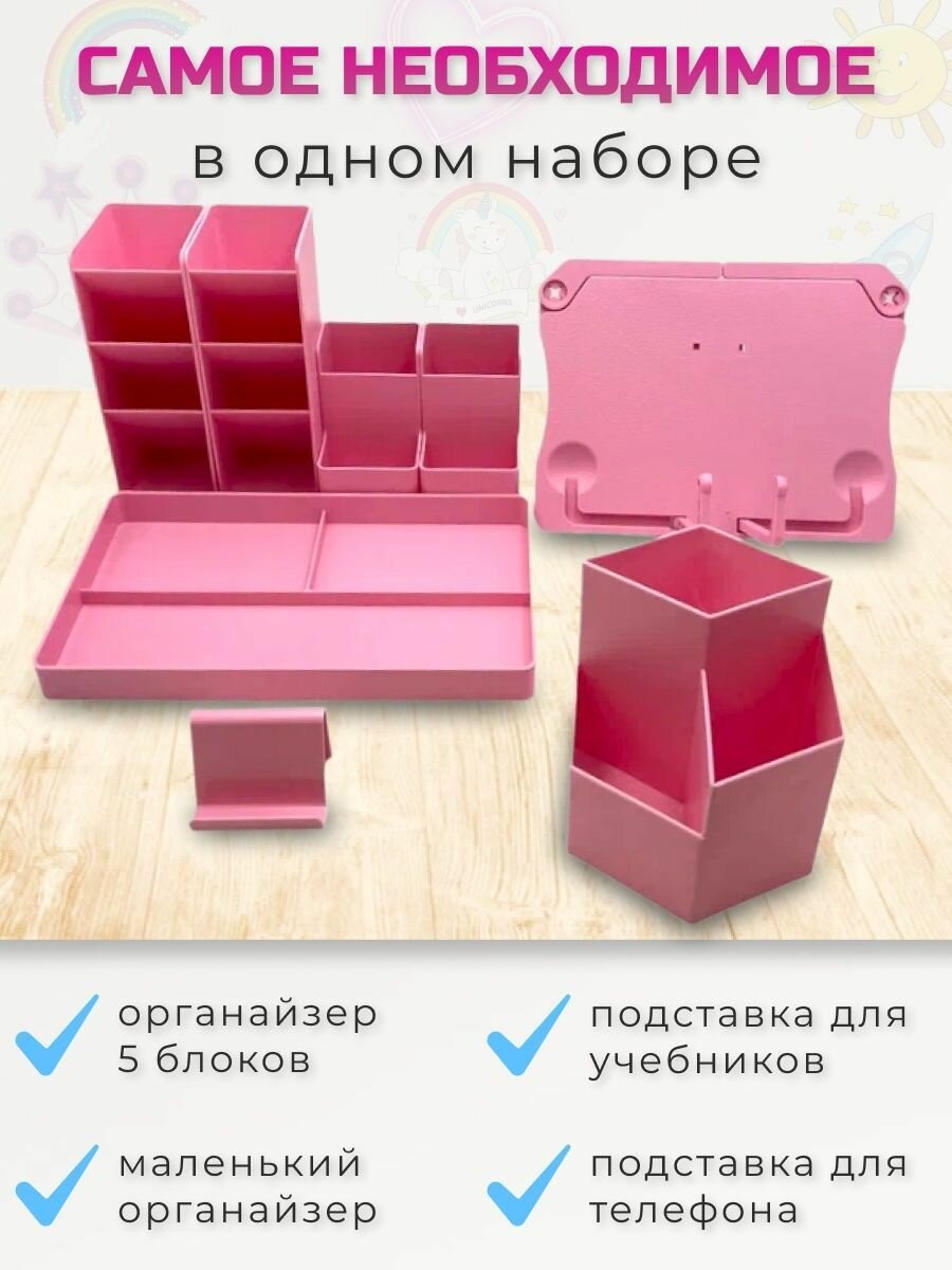 Набор органайзер для канцелярии 4 предмета розовый интересное: