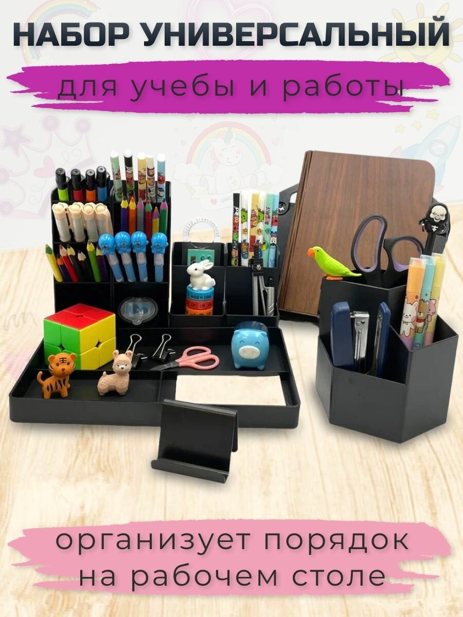 Набор органайзер для канцелярии 4 предмета черный интересное: