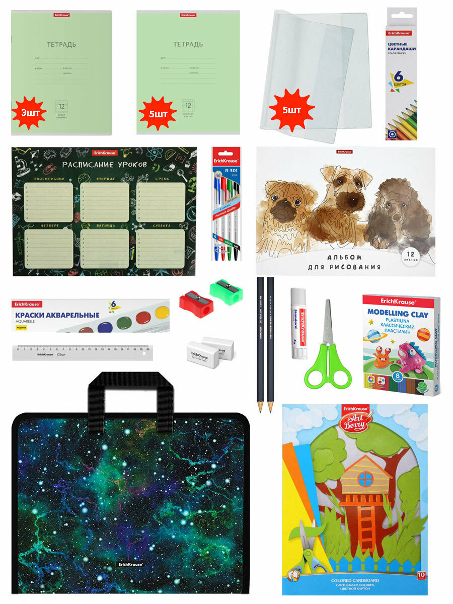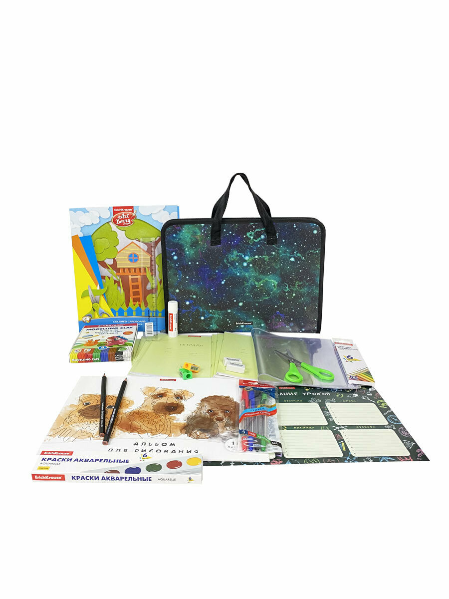 Набор первоклассника из канцелярских товаров ErichKrause в папке, 33 предмета, универсальный интересное: