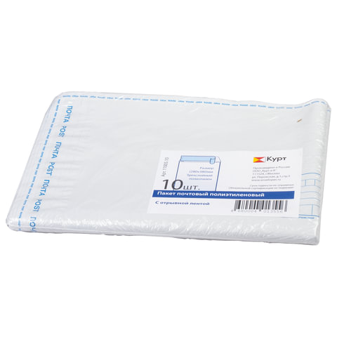 Конверт-пакеты полиэтилен В4 (250х353 мм) до 300 л, отрывная лента, "Куда-Кому", комплект 10 шт, 11004.10