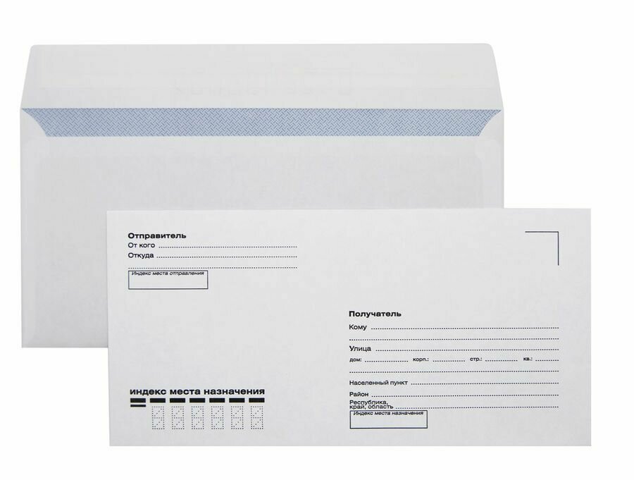 Конверт Е65 белый 110х220мм с адресной сеткой 50 шт/уп интересное:
