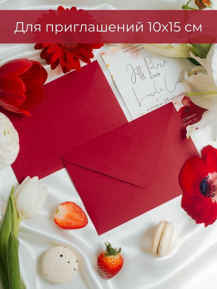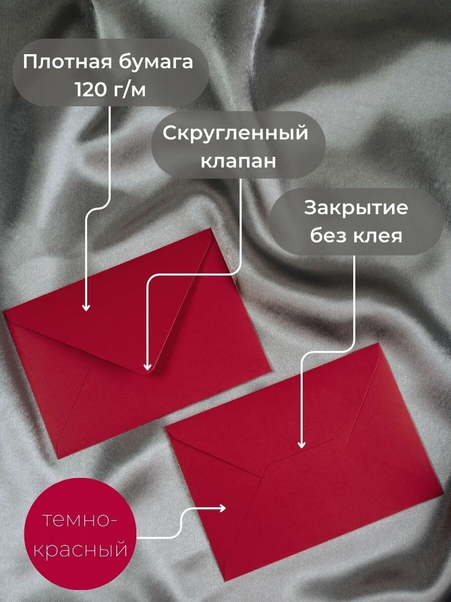 СохранитьТёмно-красные конверты бумажные для пригласительных, С6 114х162мм - набор 10 шт. цветные интересное: