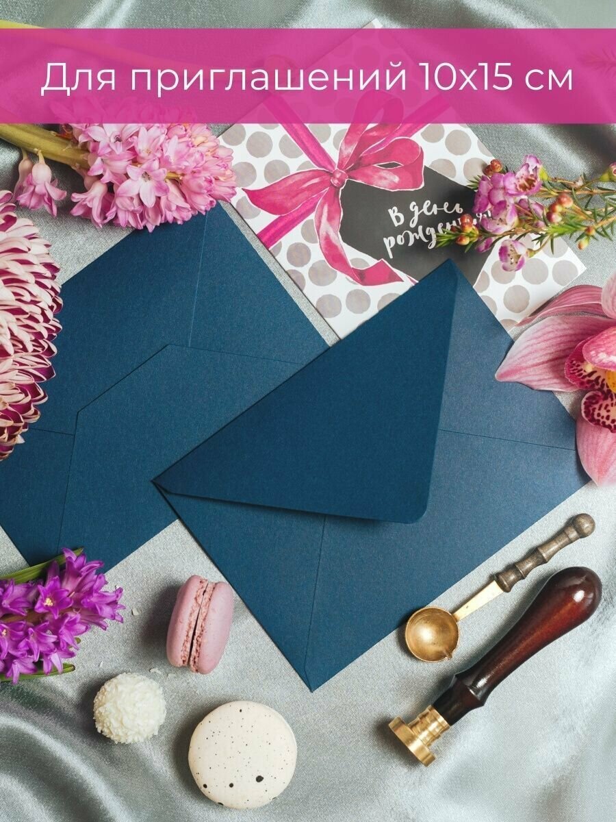 Темно-голубые конверты бумажные для пригласительных, С6 114х162мм - набор 10 шт. цветные