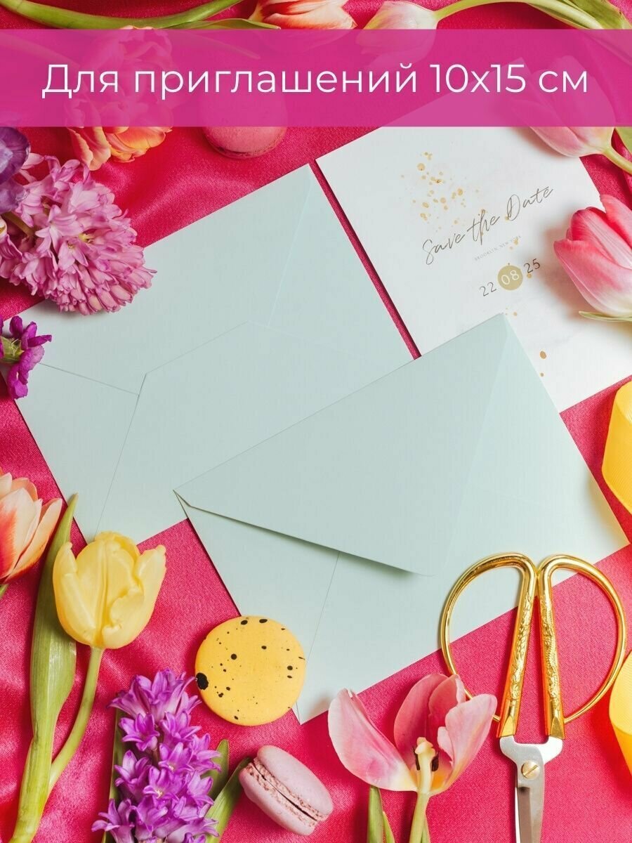 Пастельно голубые конверты бумажные для пригласительных, С6 114х162мм - набор 10 шт. цветные